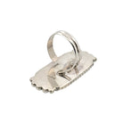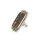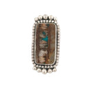 Expertly handcrafted by renowned Navajo silversmith Sheila Becenti, this adjustable Royston Turquoise ring showcases the raw, natural beauty of one of the Southwest’s most treasured stones. The elongated rectangular stone displays the distinctive earthy browns and vivid turquoise veins that make Royston Turquoise so highly sought after by collectors. Set in gleaming sterling silver, the stone is framed with traditional Navajo silver beading that highlights Becenti’s masterful precision and artistry. The design balances bold presence with timeless elegance, celebrating both heritage and individuality. Each piece reflects the cultural legacy and handwork that has defined Navajo jewelry for generations.