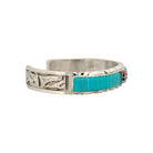 This exquisite multi-stone bracelet by Zuni artist Don Dewa exemplifies the precision and beauty of traditional Zuni inlay work. Handcrafted from sterling silver, the cuff features an intricate channel inlay design combining sleeping beauty turquoise, coral, jet, and mother of pearl. At the center, Dewa’s signature Sunface motif symbolizes harmony, balance, and the unity of all elements. Each stone is meticulously hand-cut and set, forming a seamless flow of color and geometry that highlights the artist’s exceptional craftsmanship. The silver edges are delicately scalloped, framing the vibrant stones with a refined touch. This bracelet captures the spirit of Zuni artistry—rich in symbolism, tradition, and precision.