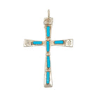 This exquisite cross pendant by Zuni artist Cecilia Iule beautifully captures the precision and grace of traditional Zuni lapidary artistry. Each arm of the cross is inlaid with brilliant Sleeping Beauty turquoise, prized for its pure sky-blue hue and flawless finish. The turquoise is set in fine sterling silver with delicate sawtooth bezels, showcasing Iule’s mastery of intricate detail and symmetry. Hand-stamped designs adorn the tips of the cross, adding subtle texture and a touch of classic Zuni refinement. The combination of polished silver and luminous turquoise creates a radiant balance of color and light. This pendant embodies both faith and craftsmanship, blending spiritual symbolism with the timeless beauty of handmade Zuni jewelry.