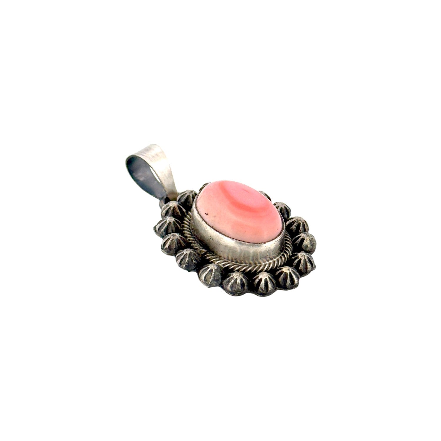 Scott Skeets, Pendant, Pink Conch Shell, Sterling Silver, Navajo Handmade, 1 1/2"