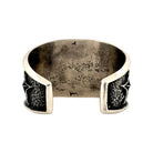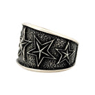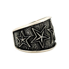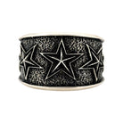 This bold bracelet by renowned Navajo artist Aaron Anderson exemplifies his signature tufa cast craftsmanship and powerful design aesthetic. Handcrafted from sterling silver, the wide cuff features deeply carved five-point stars set against a richly textured, oxidized background. The contrast between the raised, polished stars and the darkened surface creates striking dimension and visual impact. Anderson’s expert use of the tufa casting technique gives the piece a rugged yet refined finish, reflecting both strength and artistry. The bracelet’s substantial weight and clean edges make it a standout statement piece for both men and women.