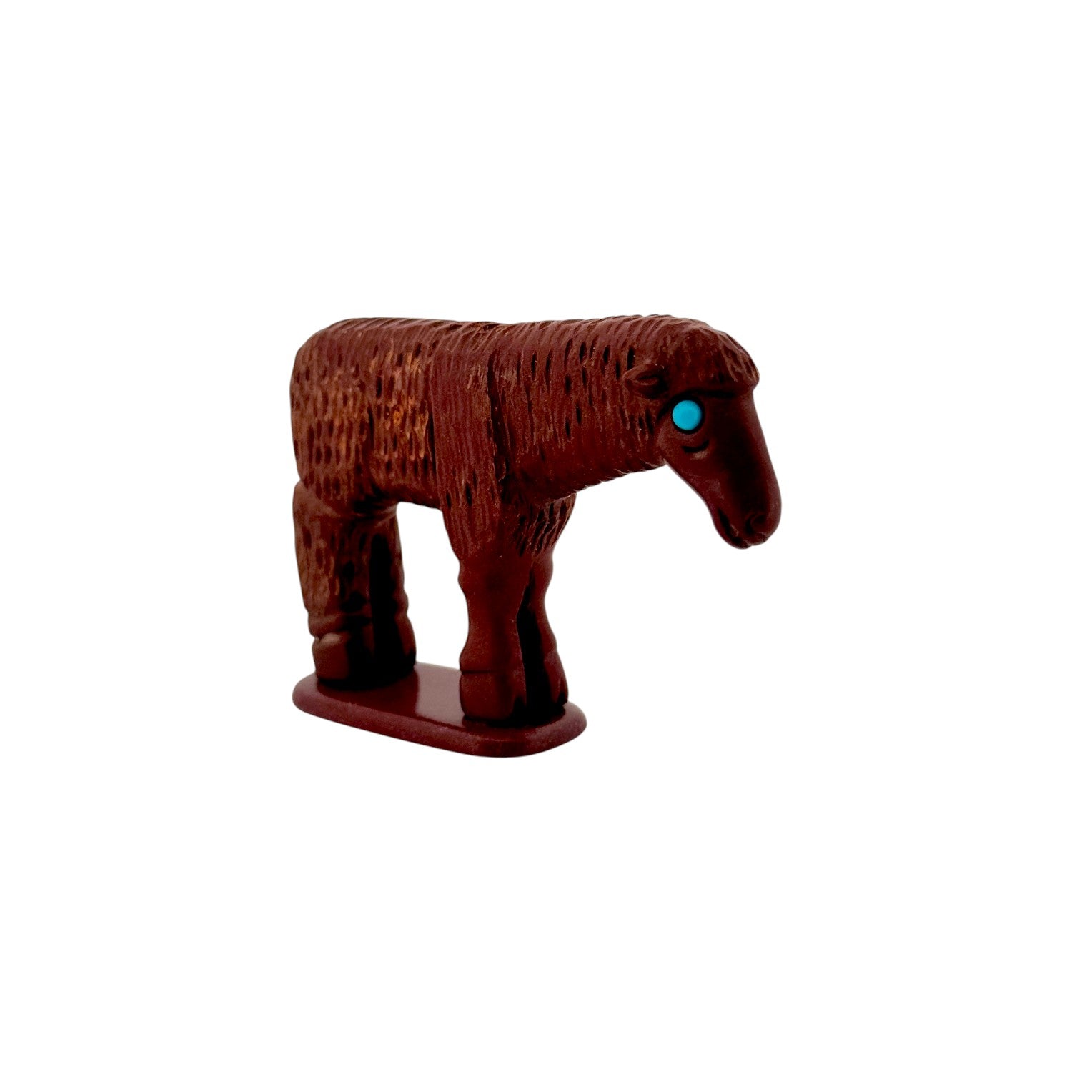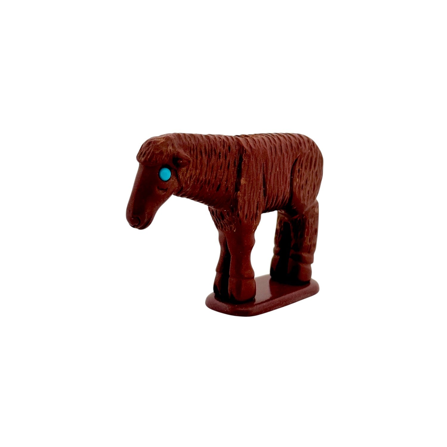 This Zuni hand-carved Sheep Fetish by Lee Bedonie is sculpted from rich red pipestone, giving the piece a warm, earthy presence. The sheep’s gentle stance symbolizes peace, provision, and steady abundance within Zuni tradition. A vivid Sleeping Beauty Turquoise inlaid eye provides a striking pop of sky-blue contrast against the deep red stone. Finely incised detailing along the body suggests the texture of wool, adding depth and character to the carving. Thoughtfully crafted and smoothly polished, this handcrafted fetish is a beautiful representation of authentic Zuni artistry and cultural meaning.