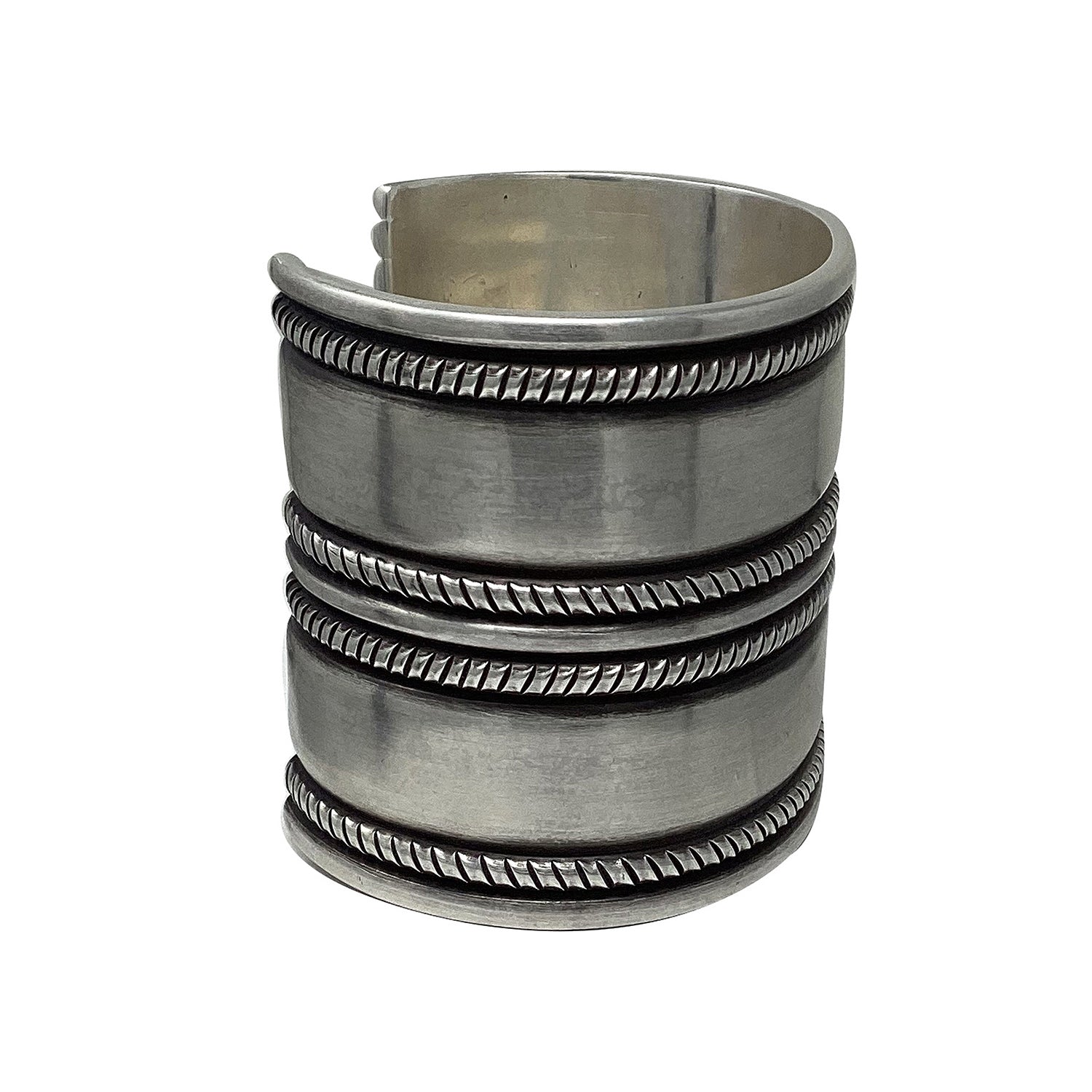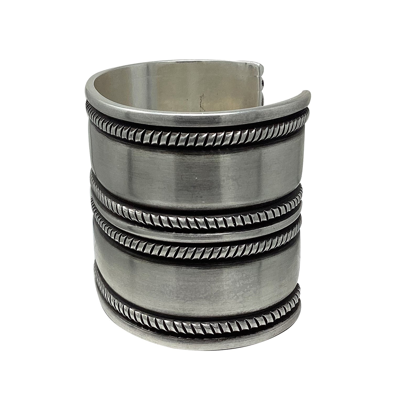 Award-winning artist Darryl Dean Begay is the father of Robert W Begay. It only makes sense that he continues to learn from his father to make his amazing creations. I don't know where the inspiration came from for this great silver cuff, but it does seem to have a fine patina finish. Robert makes this in the old style, first cutting the silver, hammering it out and then adding his own techniques to bring his art to a complete finish. This silver cuff captures those early pieces, and just like every great artist he makes his work with amazing attention to detail. You will find yourself wearing this lifestyle cuff daily, a reminder of handmade craftsmanship.