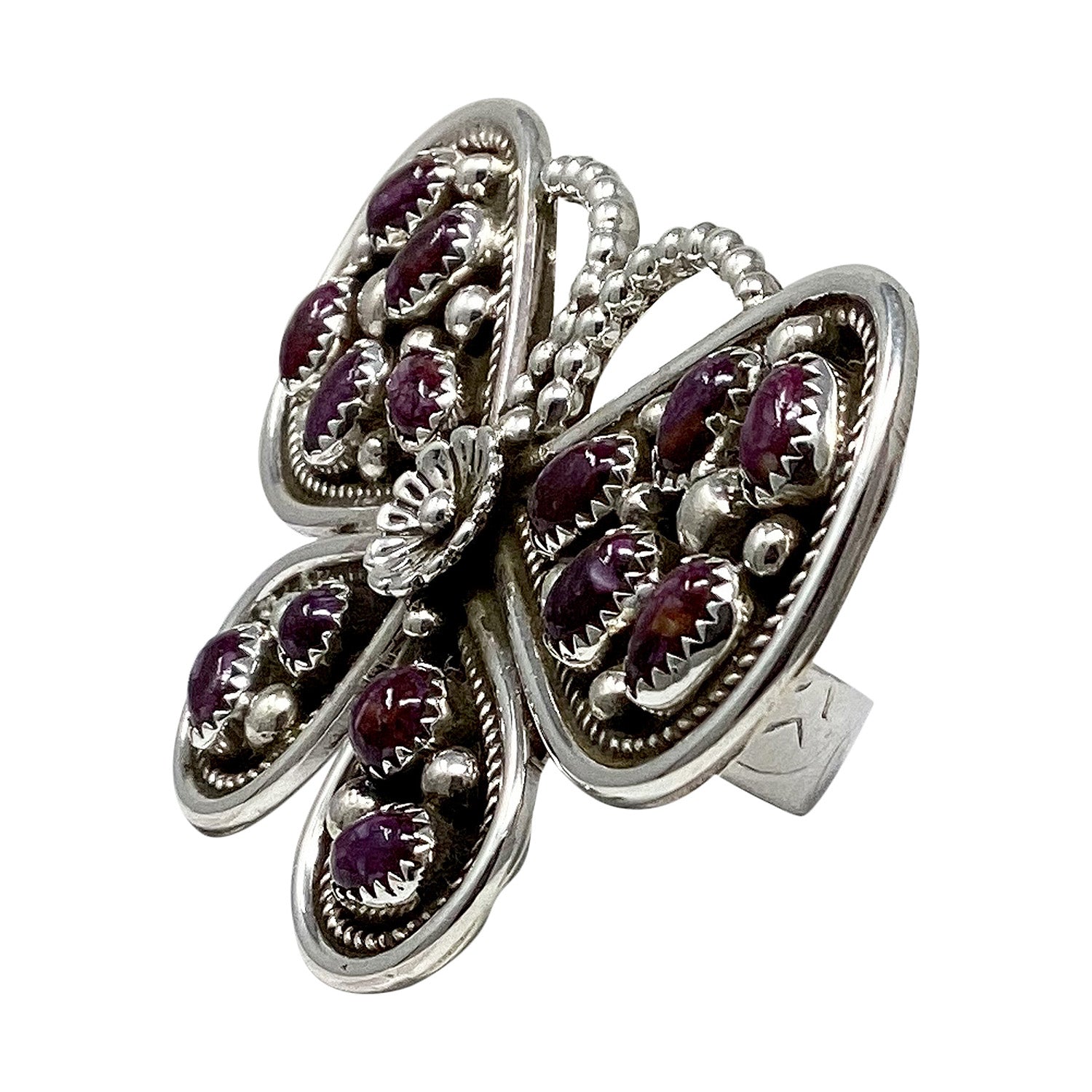 Darlene Begay, Ring, Butterfly, Purple Spiny Oyster Shell, Navajo, 9 1/2