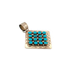 This beautiful Navajo handmade pendant by Darlene Begay features a vibrant cluster of Nevada Blue Turquoise stones set in sterling silver. The bright blue cabochons are carefully arranged in a geometric pattern that highlights the symmetry and balance of the design. Each stone is securely bezel-set and surrounded by small silver accents that add texture and dimension. The pendant is framed by a hand-finished sterling silver plate with subtle decorative details that enhance its Southwestern character. This striking piece reflects Darlene Begay’s craftsmanship and the timeless beauty of Navajo turquoise jewelry.