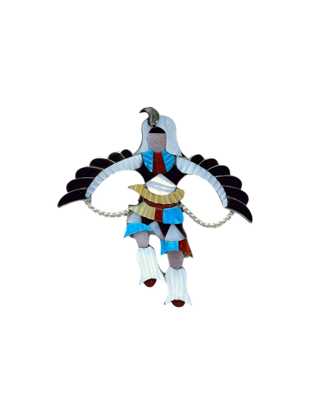 Jonathan Beyuka, Pin, Pendant, Eagle Dancer, Multi-Stone, Zuni Handmade, 2 7/8"