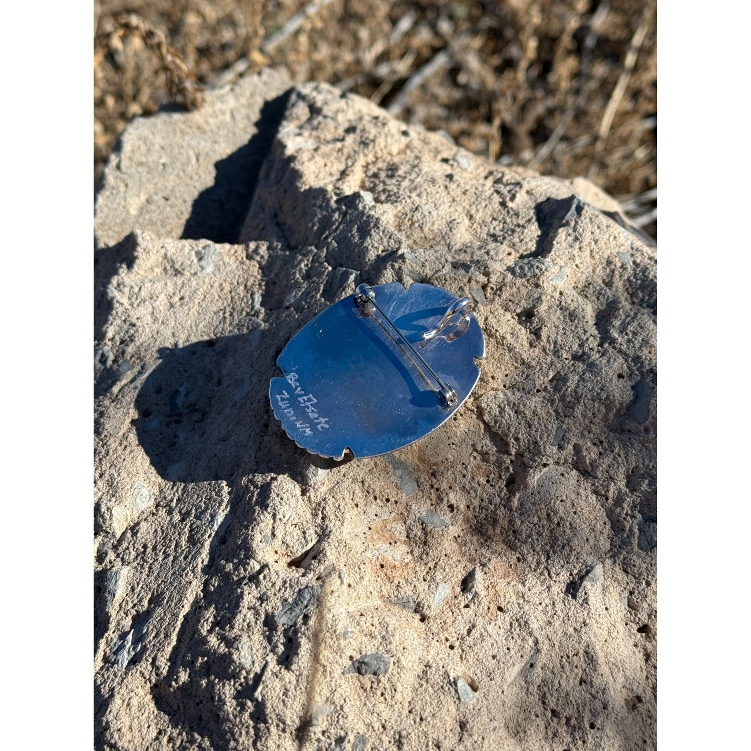 Beverly Etsate, Pendant, Pin, Multi-Stone, Sterling Silver, Zuni Handmade, 2"