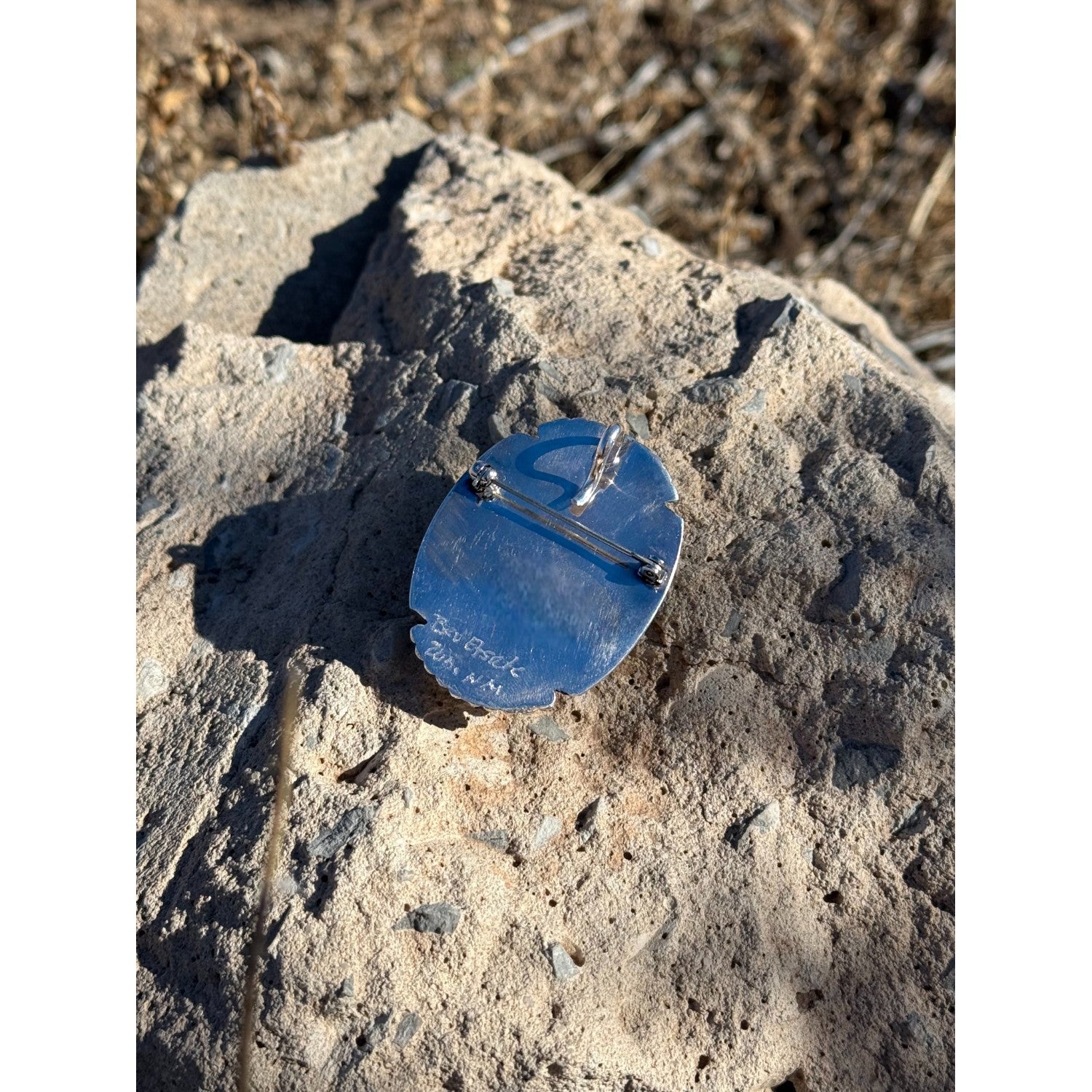 Beverly Etsate, Pendant, Pin, Multi-Stone, Sterling Silver, Zuni Handmade, 2"