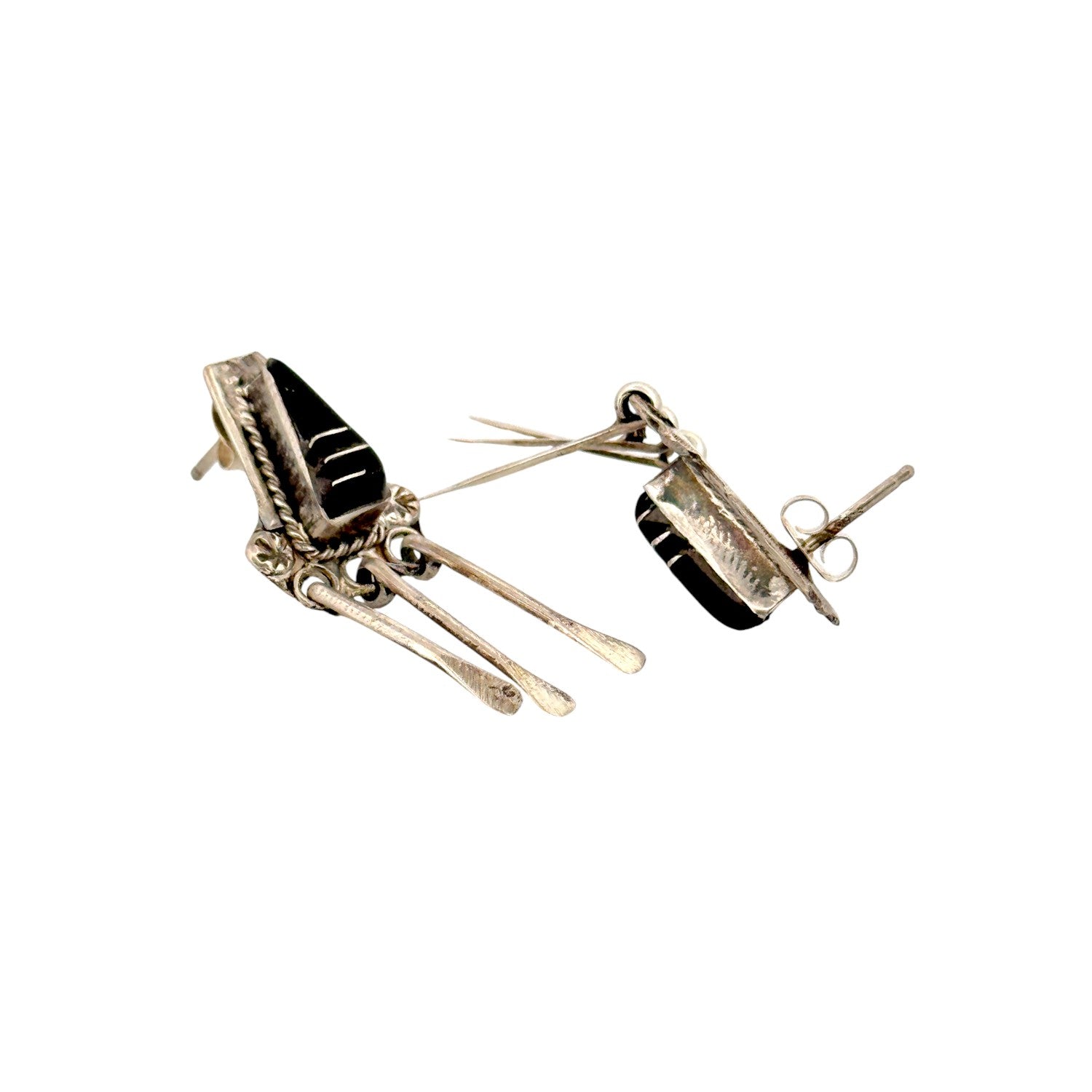 Willie Gia, Earrings, Black Onyx, Sterling Silver, Zuni Handmade, 1 1/2"
