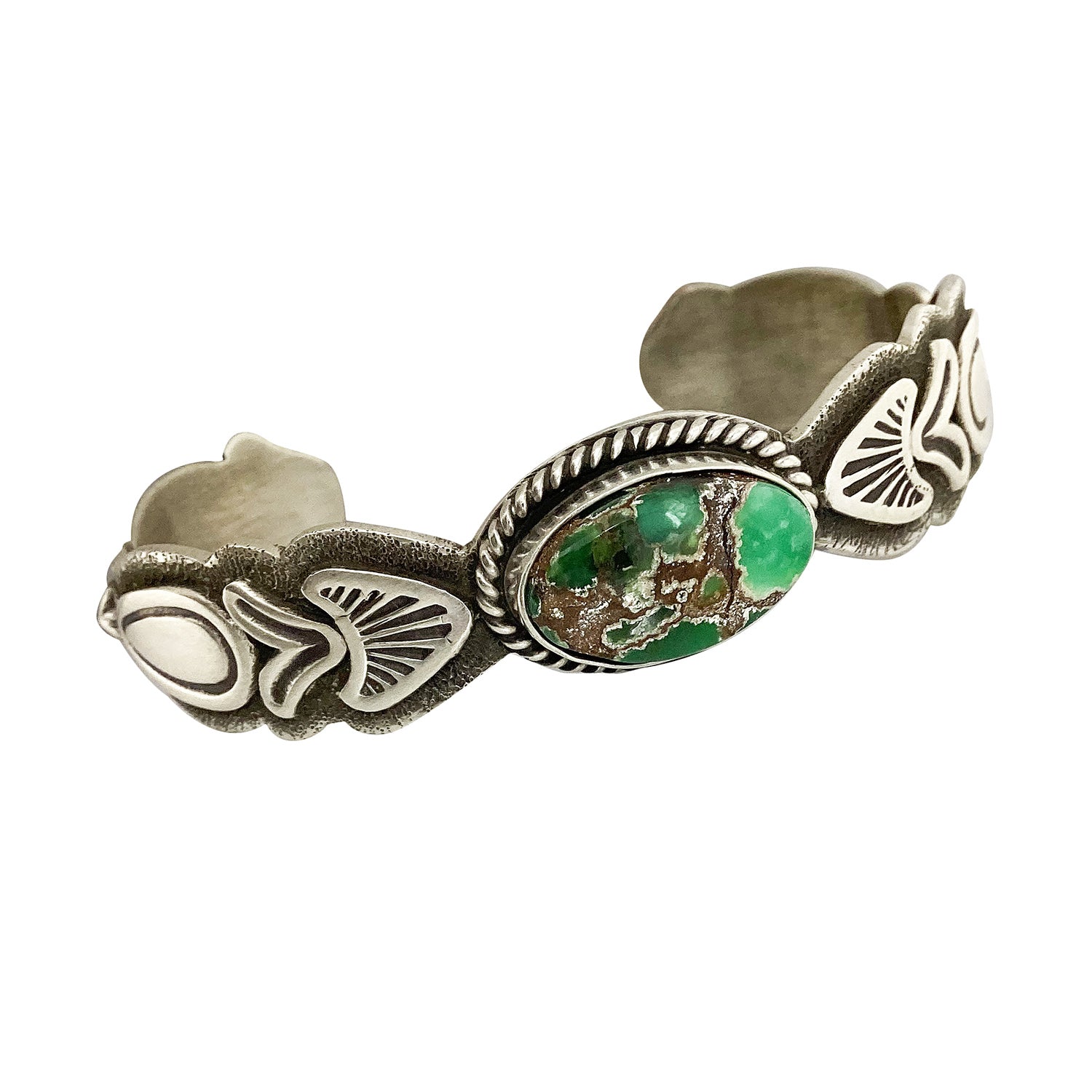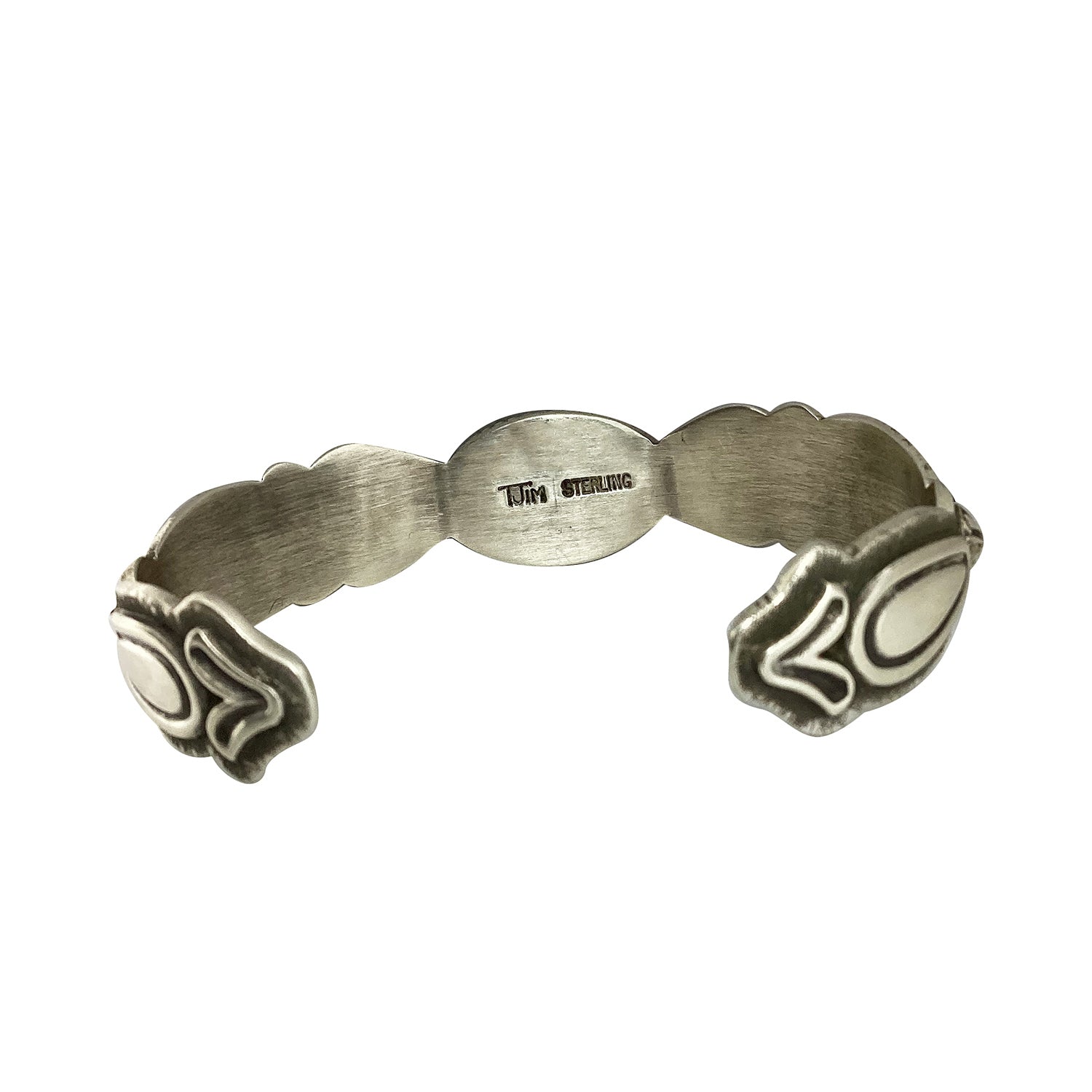 Navajo silversmith Thomas Jim is really into his craft. He has spent decades perfecting his techniques, and today his work is recognized by Native American art enthusiasts from around the world. Most collectors know him for his impressive sterling silver cluster creations. However, some of his small detail work is just as amazing. He has taken the time to work on some narrow bracelets with lots of silver stamped cutouts, textured silver, and a rustic brushed finish that turns them into pieces you just want in your collection. We have several of these and will attempt to keep them up in the online Trading Post. Remember to check them all out and add a couple to your shopping cart.