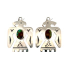 These Navajo handmade earrings by Harold Joe feature striking Kingman turquoise stones set in finely crafted sterling silver. The vivid blue stones with deep brown matrix patterns are framed in a bold arch-shaped design, symbolizing strength and harmony. Intricate hand-stamped geometric motifs and cutout detailing highlight Harold Joe’s masterful silversmithing. The combination of natural turquoise and polished silver creates a balance of traditional and contemporary Navajo style.