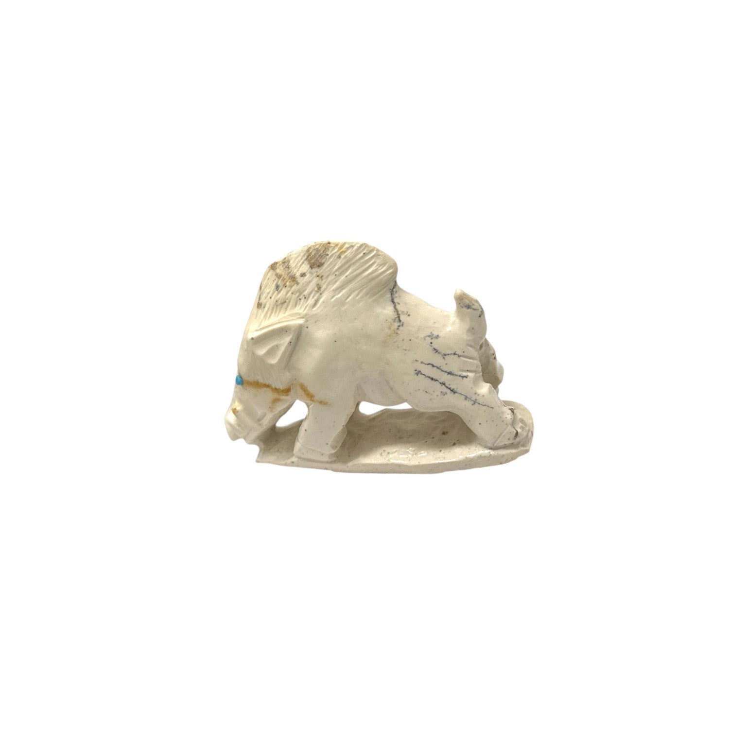 In the Zuni and Navajo culture all beings belong to one system, whether they are supernatural, animal, or human. Fetishes are small, hand-carved figures deeply rooted in the spiritual traditions of the Zuni and Navajo people of New Mexico. These sacred carvings often depict animals such as bears, wolves, eagles, and mountain lions, each symbolizing specific qualities like protection, healing, strength, or guidance. Traditionally used in ceremonial practices, fetishes serve as powerful totems that connect the physical and spiritual worlds. Today, they are also cherished collectibles, valued for their artistry, symbolism, and cultural heritage. Made from natural materials such as turquoise, coral, shell, and antler, each handmade fetish is a unique expression of craftsmanship and meaning.
