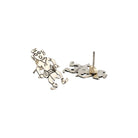 These playful and intricately crafted sterling silver earrings by Navajo silversmith Clarence Russell Lee showcase his distinctive artistry and cultural storytelling. Each earring features a stylized human figure, expertly hand-cut and stamped with traditional Navajo patterns that add depth and character to the design. The expressive forms capture a sense of motion and spirit, reminiscent of ceremonial dancers or symbolic guardians. Lee’s precise stamping and attention to symmetry highlight his exceptional silversmithing skill and eye for detail. The polished silver finish gives the figures a radiant presence, enhancing their bold yet whimsical charm.