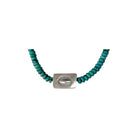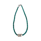 This beautifully crafted necklace features vibrant Kingman Turquoise beads thoughtfully strung by a Native artisan. The rich blue-green hues of the turquoise display natural matrix variations, giving the piece depth and authentic Southwestern character. Accented with a machine-made silver pearl centerpiece, the design offers a subtle focal point that complements the organic texture of the stones. The balanced strand creates a clean, timeless silhouette that is easy to layer or wear on its own. Blending traditional materials with classic styling, this necklace is a versatile addition to any Native jewelry collection.