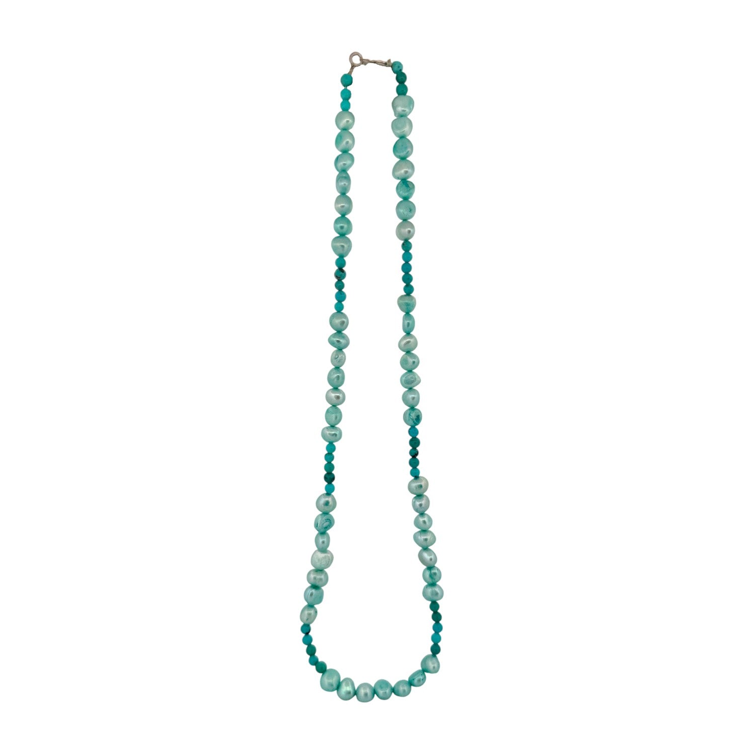 Necklace, Kingman Turquoise, Pearl, Local Native Artisan Strung, 16"