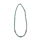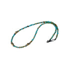 This elegant necklace features genuine Kingman Turquoise beads carefully strung by a Native artisan, highlighting the stone’s vibrant blue tones and natural matrix. Polished machine-made silver pearls are thoughtfully spaced along the strand, adding classic Southwestern shine and balance. Accents of 14k gold fill introduce a warm contrast that beautifully complements both the turquoise and silver elements. The combination of cool and warm metals with natural stone creates a refined yet versatile design. Perfect for layering or wearing alone, this necklace blends traditional materials with a subtle touch of contemporary sophistication.