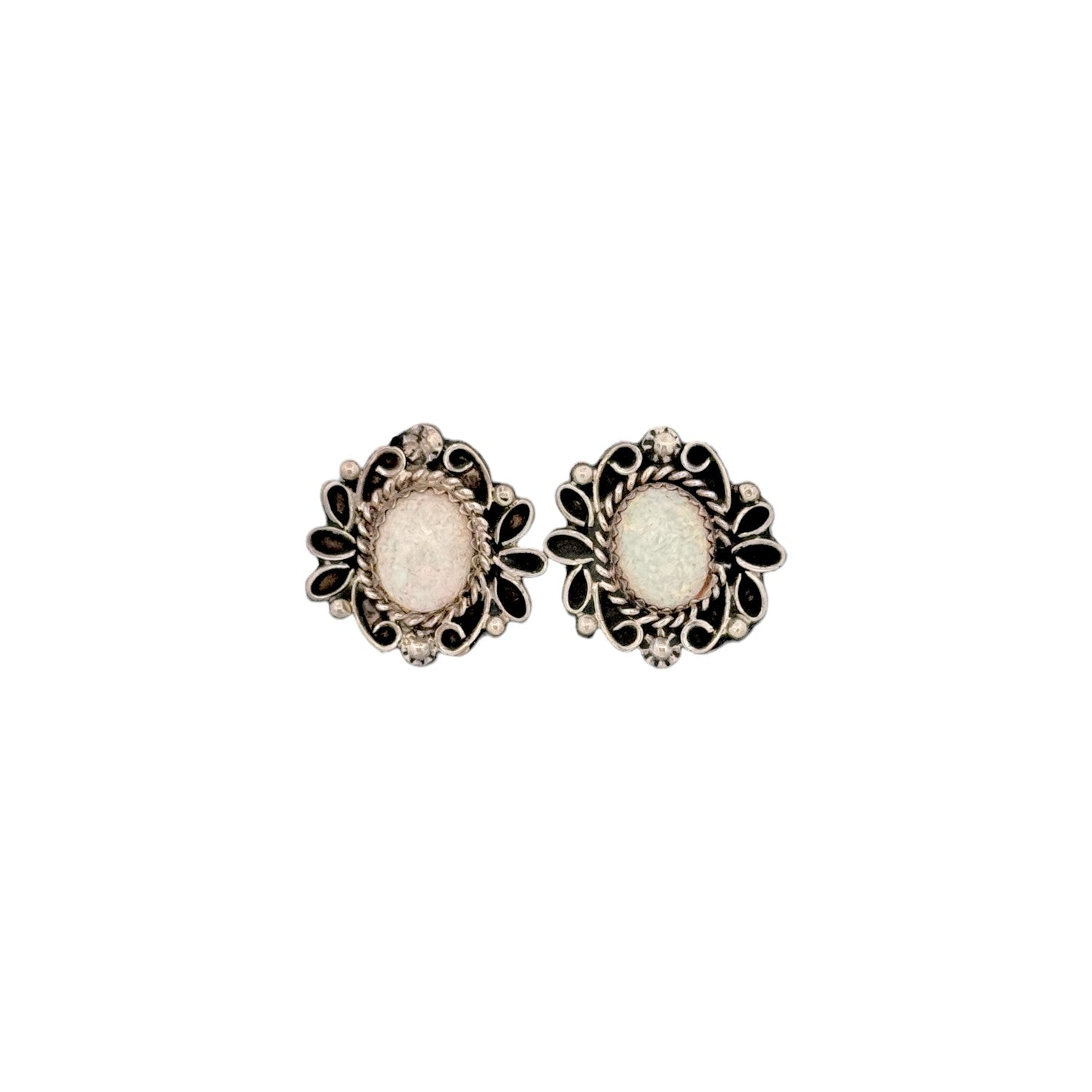 Carlton Ramone, Earrings, Opal, Sterling Silver, Navajo Handmade, 3/4"