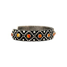 This exquisite bracelet by renowned Navajo silversmith Ernest Rangel beautifully showcases traditional craftsmanship with a modern edge. Handcrafted from sterling silver, the cuff features an intricate stamped and beaded pattern that provides a striking contrast against a dark oxidized background. Set within the detailed silverwork are vibrant spiny oyster shell cabochons, their rich orange hues radiating warmth and energy. Each stone is carefully bezel-set, reflecting Rangel’s signature attention to detail and balance. The bracelet’s design combines symmetry and texture, resulting in a piece that feels both bold and elegant.