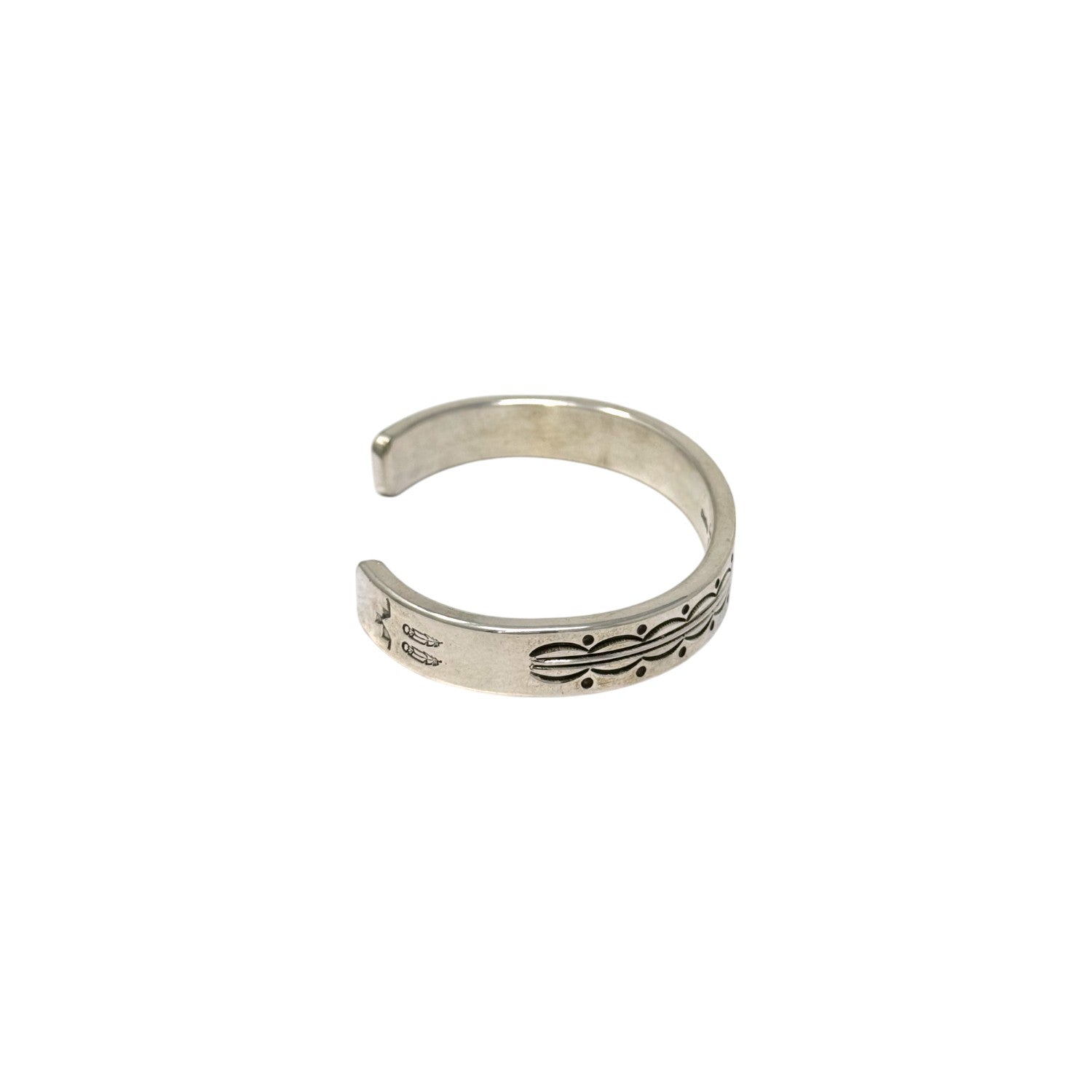 Crafted by Navajo silversmith Landon Secatero, this sterling silver bracelet is a masterclass in subtle sophistication and cultural symbolism. The design features a precision-stamped repeating pattern that evokes traditional motifs, bold geometric forms that speak to protection, unity, and heritage. Clean lines and a polished finish give this piece a modern elegance while honoring time honored techniques. The bracelet’s narrow profile makes it ideal for daily wear, stacking, or pairing with other heirloom quality pieces. Each mark is struck with intention, reflecting the artist’s deep respect for the spiritual and aesthetic traditions of his people.