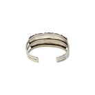 This vibrant bracelet by Lyolita Tsatte is a beautiful expression of Zuni artistry, featuring bold Mediterranean coral stones hand set in a graceful row. Each coral cabochon is meticulously placed and framed by polished sterling silver beads, creating an elegant rhythm of color and texture. Stylized fan shaped silver appliqués are interspersed between the coral settings, adding a touch of dynamic motion and traditional design symbolism. The cuff’s structure offers both comfort and visual weight, ideal for wearers who appreciate statement pieces with cultural depth. Handcrafted with care, this bracelet showcases the Zuni dedication to precision lapidary work and intricate silverwork.