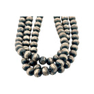 This vintage Navajo handmade necklace, crafted circa the 1970s, is a timeless example of traditional Southwestern silversmithing. Made entirely of sterling silver, the piece features three strands of oxidized Navajo pearls, each hand-formed and polished to achieve a rich patina that speaks to decades of character and wear. The graduated bead sizes create a balanced, elegant flow, while the cone ends and hook clasp highlight the meticulous craftsmanship of the artist. Each bead bears subtle hammer marks and natural variations, emphasizing its handmade authenticity. The design embodies both simplicity and sophistication, allowing it to be worn alone or layered with other Native pieces.