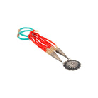 This striking vintage Navajo handmade pendant and pin showcases the beauty of traditional craftsmanship and natural materials. The piece features a sterling silver concho centerpiece, hand-stamped with classic Navajo sunburst designs that radiate texture and depth. Flowing from the silver are vibrant strands of natural coral and shell beads, complemented by a loop of Sleeping Beauty turquoise, prized for its brilliant sky-blue hue. The combination of these materials creates a stunning contrast; red coral symbolizing life and vitality, turquoise representing protection and healing, and shell adding a soft, organic balance. Each element is meticulously hand-assembled, reflecting both artistry and cultural symbolism.