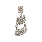 These Navajo handmade earrings by Gabrielle Yazzie highlight her refined skill in sterling silver stampwork and traditional design. Each earring features three linked panels adorned with hand-stamped patterns and raised repoussé domes, creating depth and dimension. The symmetrical motifs reflect classic Navajo symbolism, representing harmony, strength, and beauty. The oxidized background enhances every stamped detail, giving the earrings a vintage patina that emphasizes their handcrafted quality. Despite their intricate design, they remain lightweight and move gracefully when worn. Gabrielle Yazzie’s artistry shines through in the balance of traditional techniques and contemporary elegance.
