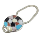 Zuni Handmade Money Clip, Fish Scale Inlay, Shell, Coral, Jet, Turquoise, 2 1/4"