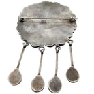 This pin is a beautiful collection of Kingman Turquoise. You will find the stones reveal a rich blue color with lots of matrix. The pin is made by a Navajo silversmith and the hallmark BJ is stamped on the backside. Four dangles come off the cluster and give the pin a great look. A gorgeous patina fills the circa 1990s creation. Pins have always been an important part of Navajo and Zuni jewelry, worn for ceremonial and daily dress up.