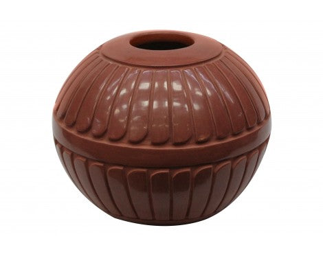 San Juan Pueblo potter Sue Tapia makes very impressive pieces of art. She combines a rich finish with extensive carved design. You will find her work in a range of sizes, from the small to large. We have a few pieces from this amazing artist so make sure you look at the all.
