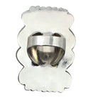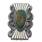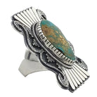 A handful of talented Navajo artist make this style of overlay. It is an art that requires precision and incredible patience. Navajo silversmith Bobby Johnson painstakingly cuts his traditional bow tie design from silver and layers it over the solid silver background. You will notice how he textures part of his design that really draws your attention to the piece. Right in the center he has set a stunning piece of Easter Blue Turquoise. The Nevada rock shows of a magnificent bluish green with a heavy dose of host rock matrix. Everything about this ring just feels right. Add this fabulous piece to your growing collection of Native American wearable art.