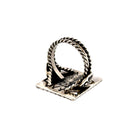 This striking ring is a Navajo handmade creation by silversmith Tom Bryon. Crafted from sterling silver, it features a bold rectangular face showcasing a finely arranged multi-stone inlay of turquoise in varied shades of blue and green with natural matrix. The geometric pattern of the inlay reflects both precision and artistry, creating a design that is at once contemporary and deeply rooted in Navajo tradition. Framing the stonework is a double border of twisted rope and stamped silver, adding texture and dimension. The oxidized background enhances the brilliance of the turquoise while giving the piece a classic Southwestern character. With its strong, structured design, this ring makes a confident statement on the