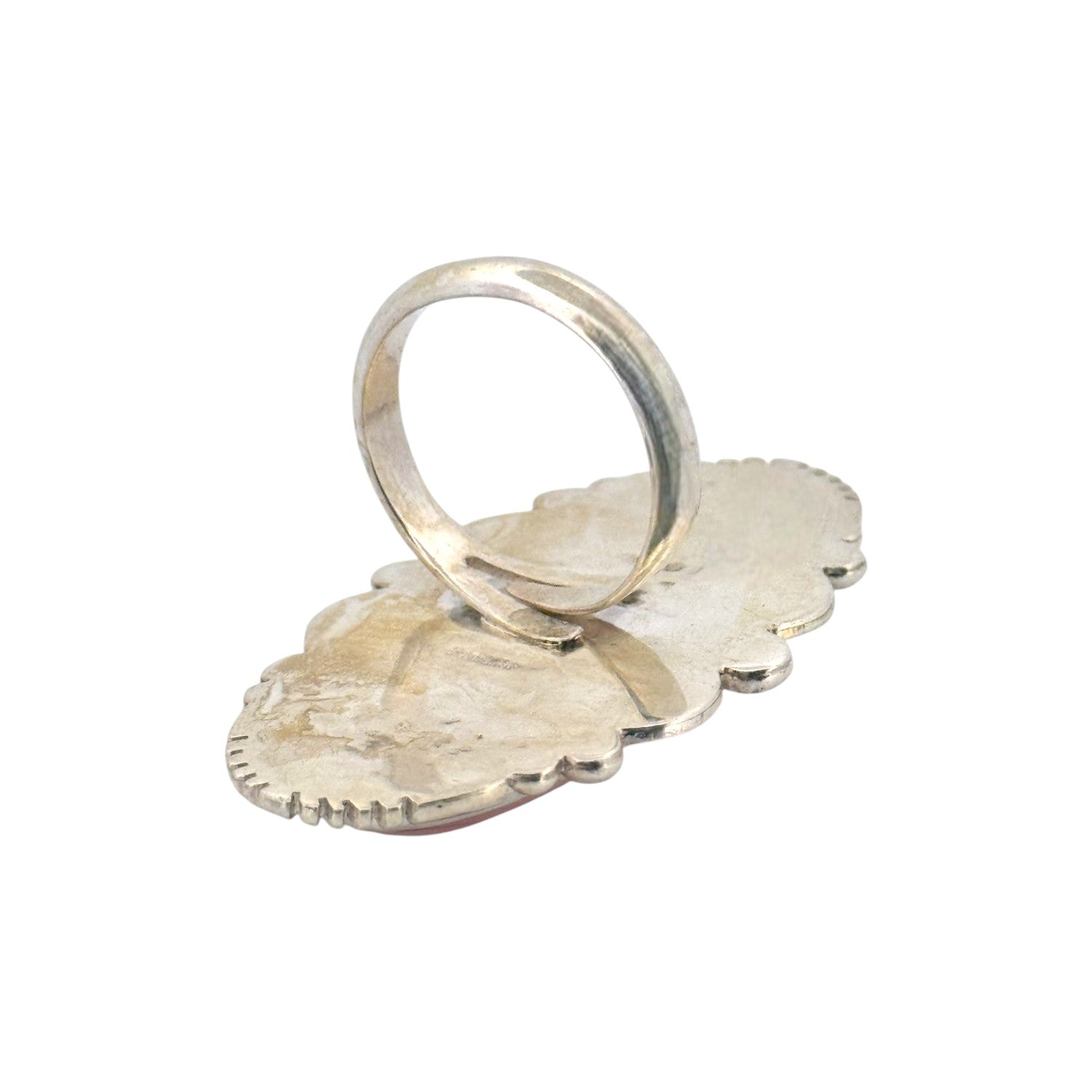 Fred Francis, Ring, Pink Conch Shell, Sterling Silver, Navajo Handmade, 11"