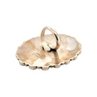 This elegant ring by Navajo artist Geraldine James features a brilliant Turquoise Mountain turquoise centerpiece surrounded by a radiant halo of Mother of Pearl cabochons. The turquoise displays a vivid blue hue with delicate matrix patterns, symbolizing the spirit of the desert sky, while the luminous Mother of Pearl adds a soft, ethereal contrast. Each stone is set in sterling silver, framed by a twisted rope bezel and accented with handcrafted silver beads, showcasing James’s exceptional silversmithing skill. The combination of colors creates a timeless balance between bold and graceful. Every element is carefully handmade, reflecting traditional Navajo design with refined artistry.