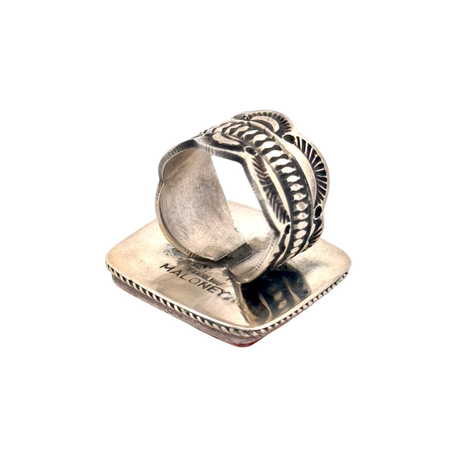 Freddie Maloney, Ring, Spiny Oyster Shell, Sterling Silver, Navajo Handmade, 8"