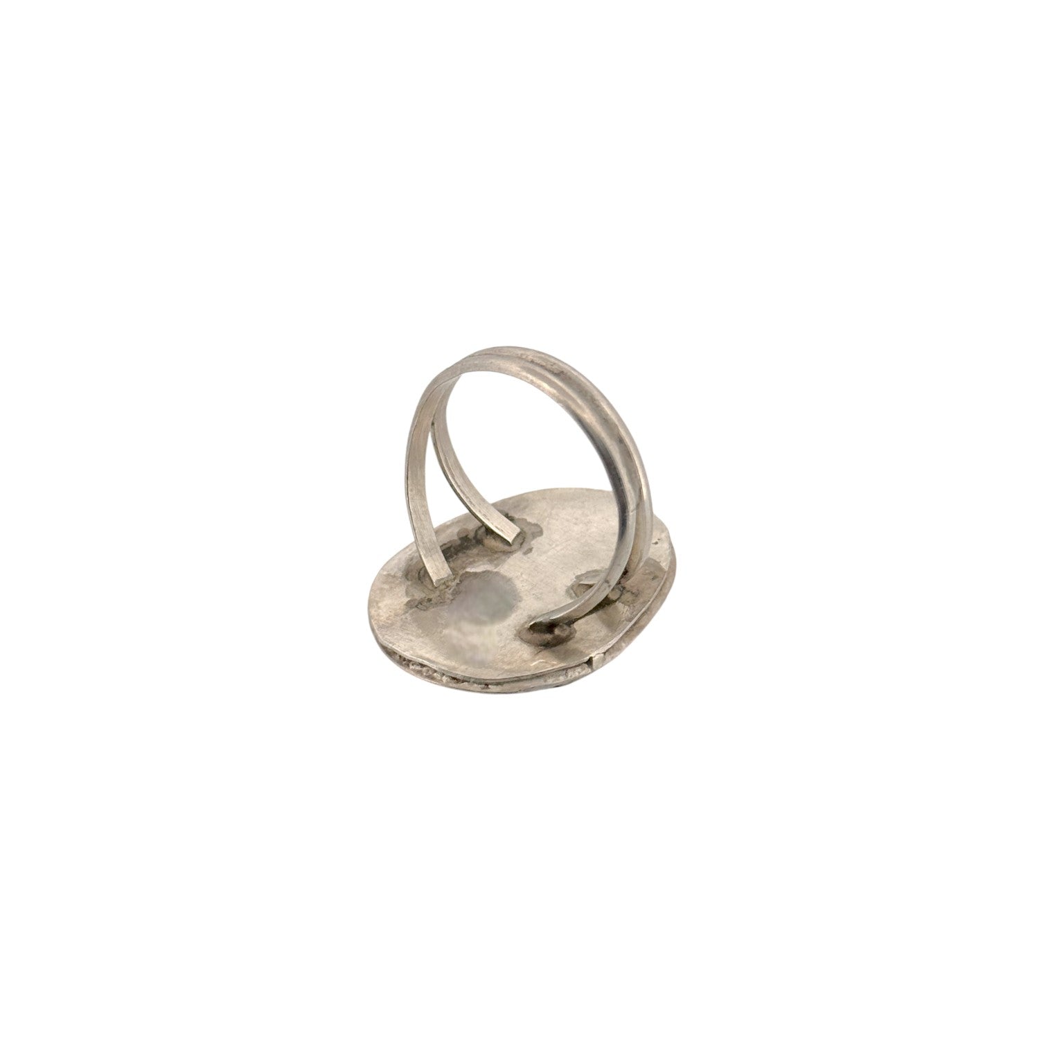 This vintage Navajo handmade ring features a striking Kingman turquoise stone set in classic sterling silver. The oval cabochon shows vibrant blue tones with warm brown matrix, giving the stone rich natural character and depth. A twisted silver rope border surrounds the turquoise, adding traditional texture and framing the stone beautifully. The smooth outer bezel provides a clean, timeless silhouette that highlights the craftsmanship without distraction. Bold yet elegant, this ring is a wonderful example of vintage Navajo jewelry and the enduring appeal of Kingman turquoise.