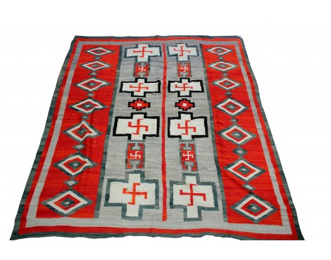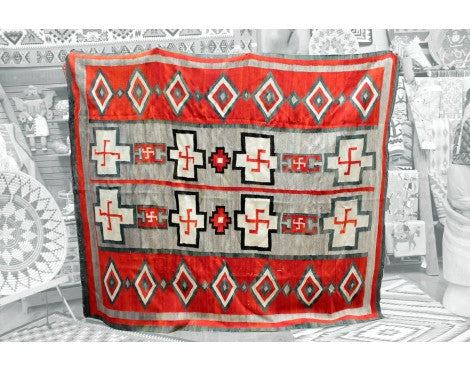Before the trains started coming to this part of the world and businesses like the Fred Harvey Company started selling Navajo jewelry to the masses, most people back east didn't know anything of the Navajo. Traders like JB Moore would be one of the first to introduce the art of the Navajo to collectors back east, rugs not silver. He put together a catalog of different weavings that would be sold in large quantities. More Traders would begin to introduce Navajo weavings and even influence certain styles.Today this tradition is carried on by the Trading Posts. We have a large collection of weavings from classic Ganado Reds to Germantown Revivals. Also, old antiques that have the character that goes with age to the new contemporary weavings. Enjoy looking through our online collection, and remember if you don't see what you are looking for we have many more in the Post.