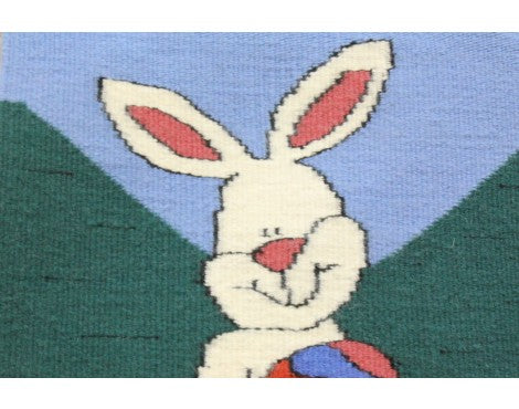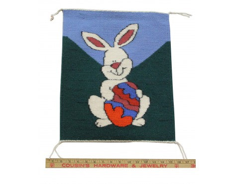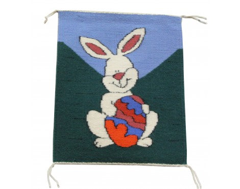 Joann Begay, Pictorial Easter Bunny Rug, Navajo Handwoven, 14in x 17in