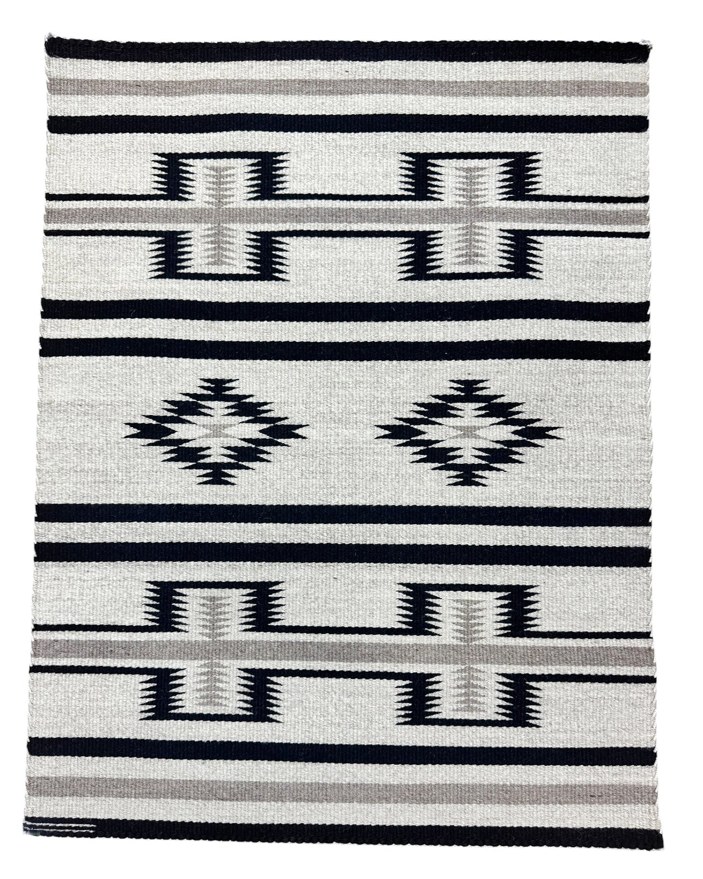 The favorite weaving for many collectors is the Two Grey Hills. Famous because of the natural sheep colors and the stiff feel of churro wool. Many Two Grey Hills will have very complex patterns, and it takes a significant amount of time to realize all of the hidden symbols. Patterned after the classic Diamond designs this is definitely a style you need in your growing collection of rugs.