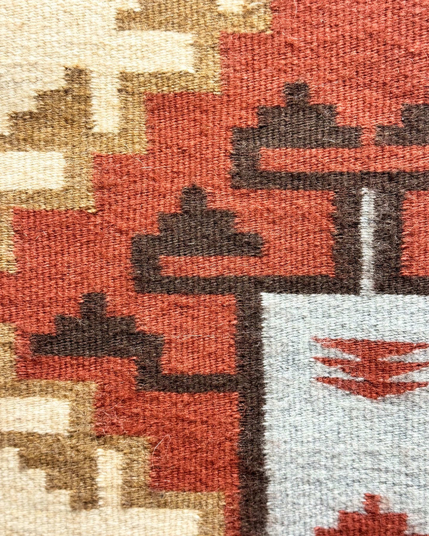 The favorite weaving for many collectors is the Two Grey Hills. Famous because of the natural sheep colors and the stiff feel of churro wool. Many Two Grey Hills will have very complex patterns, and it takes a significant amount of time to realize all of the hidden symbols. Patterned after the classic Diamond designs this is definitely a style you need in your growing collection of rugs.