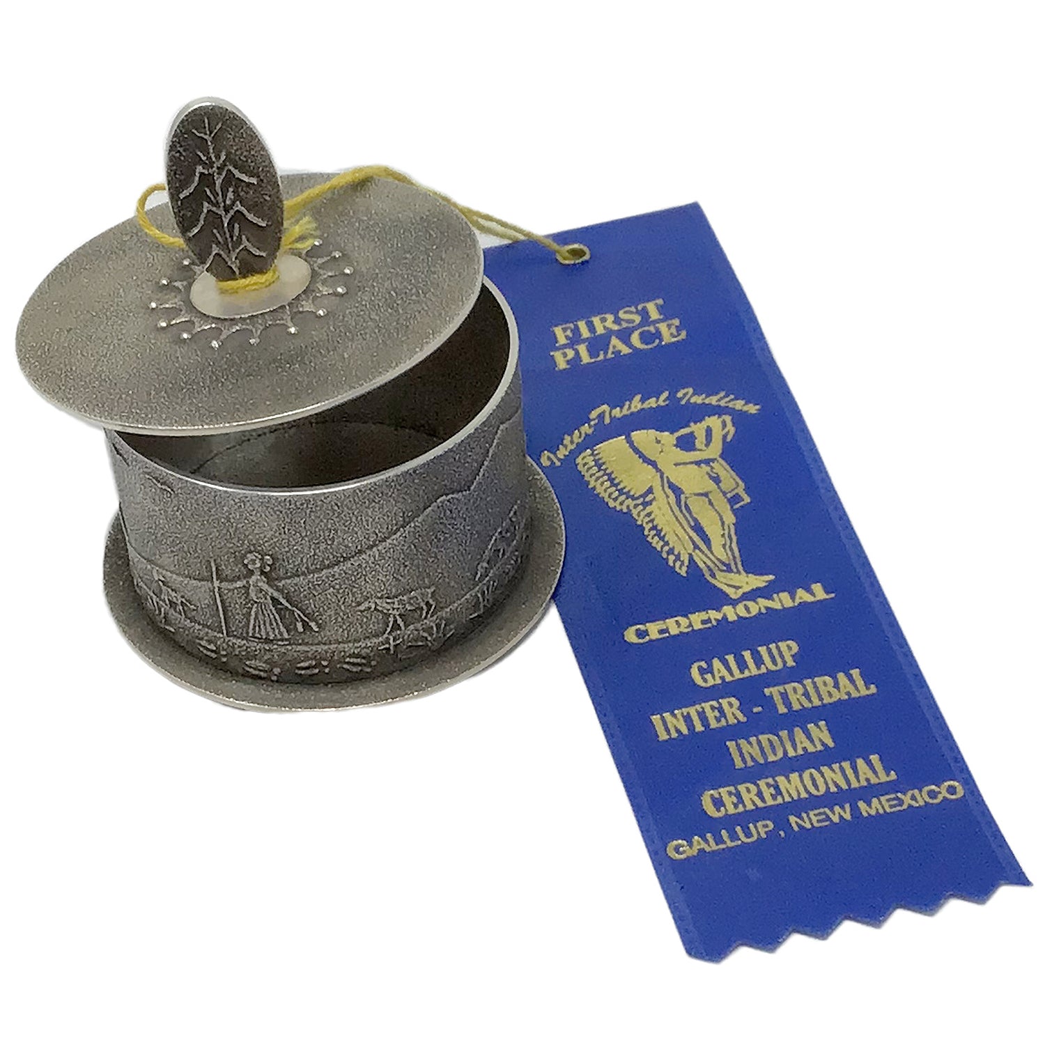 Darryl Dean Begay, Container, Blue Ribbon, Traditional Navajo Life, 3 1/8" x 3"