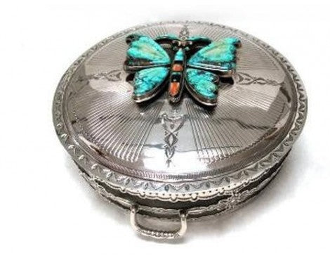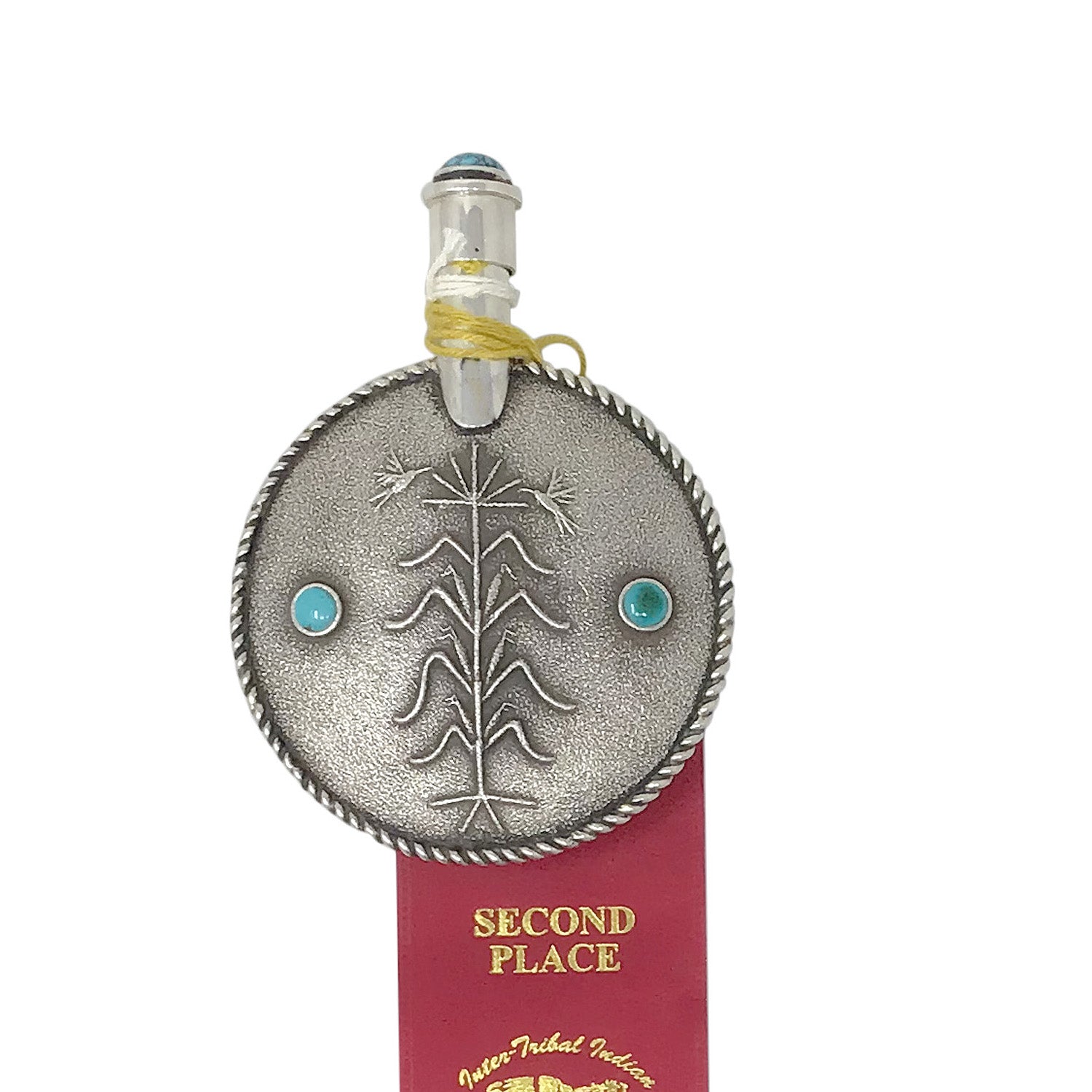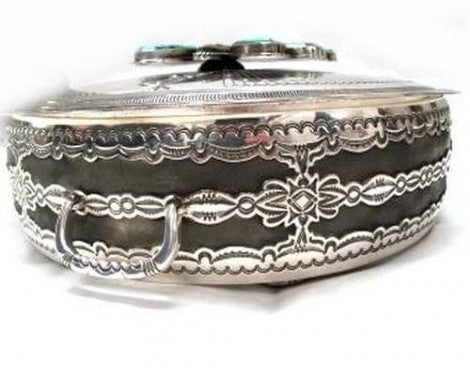 Darryl Dean Begay, Tobacco Flask, Canteen, Turquoise, Navajo Handmade, 4 1/2"