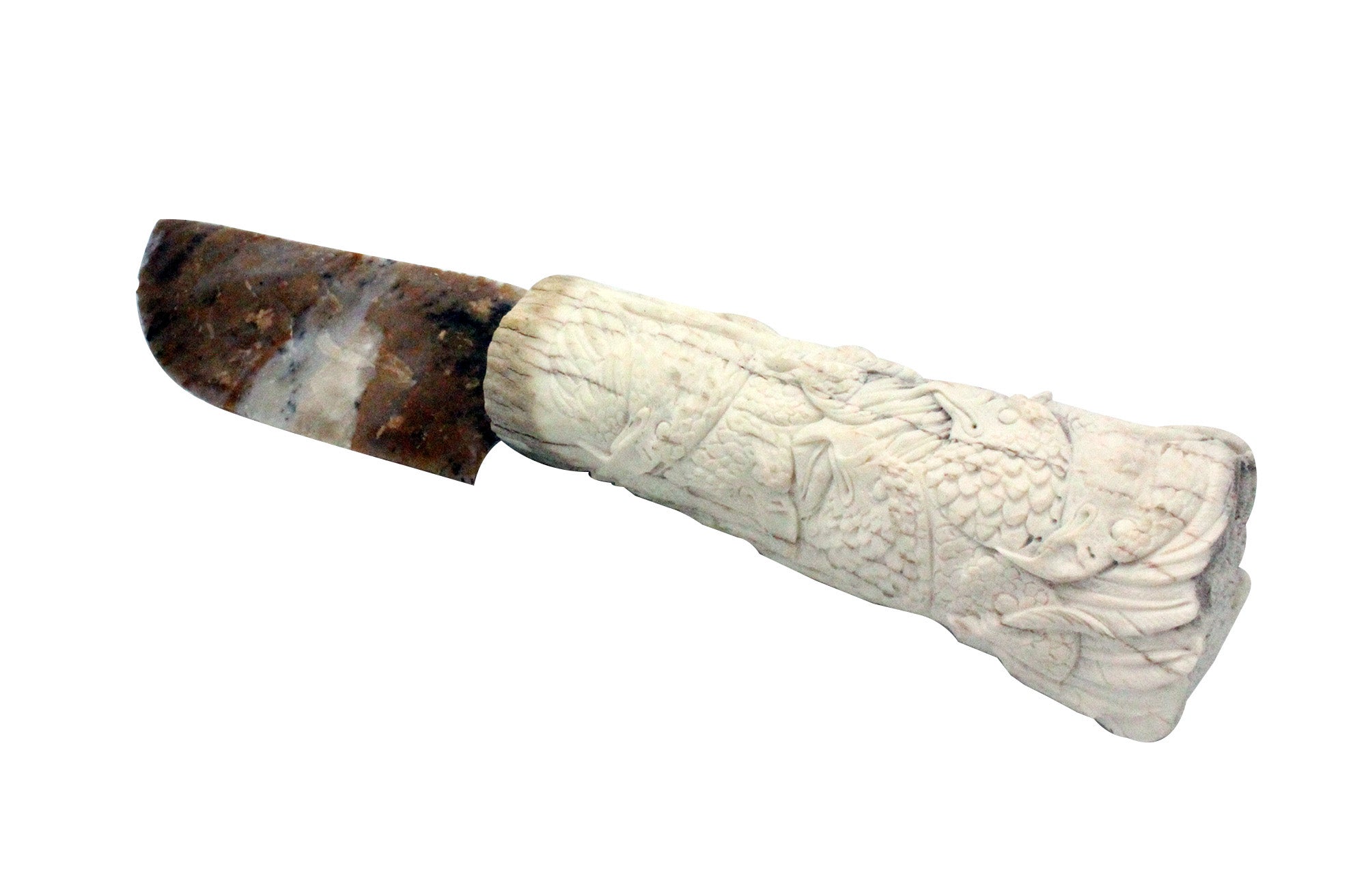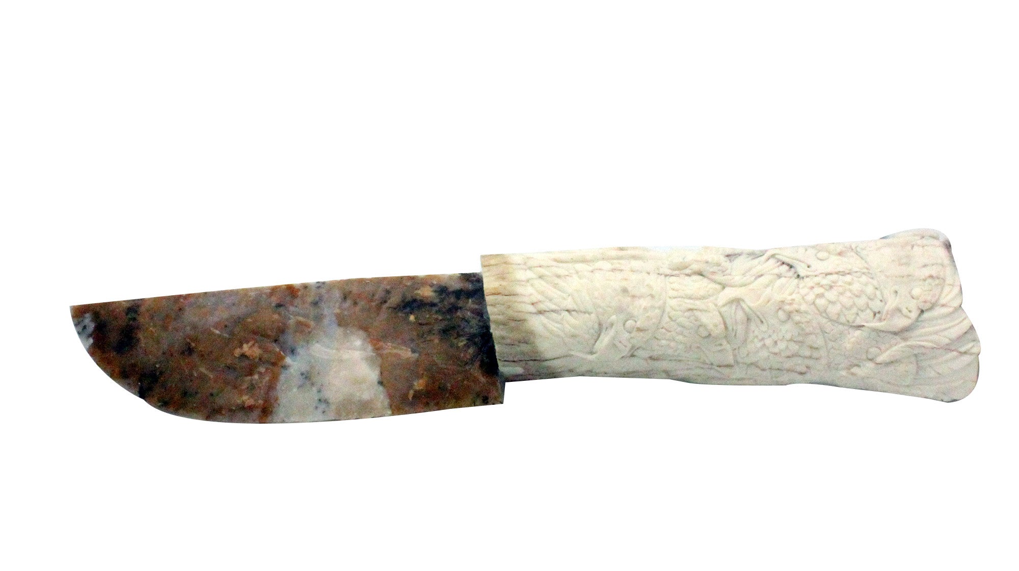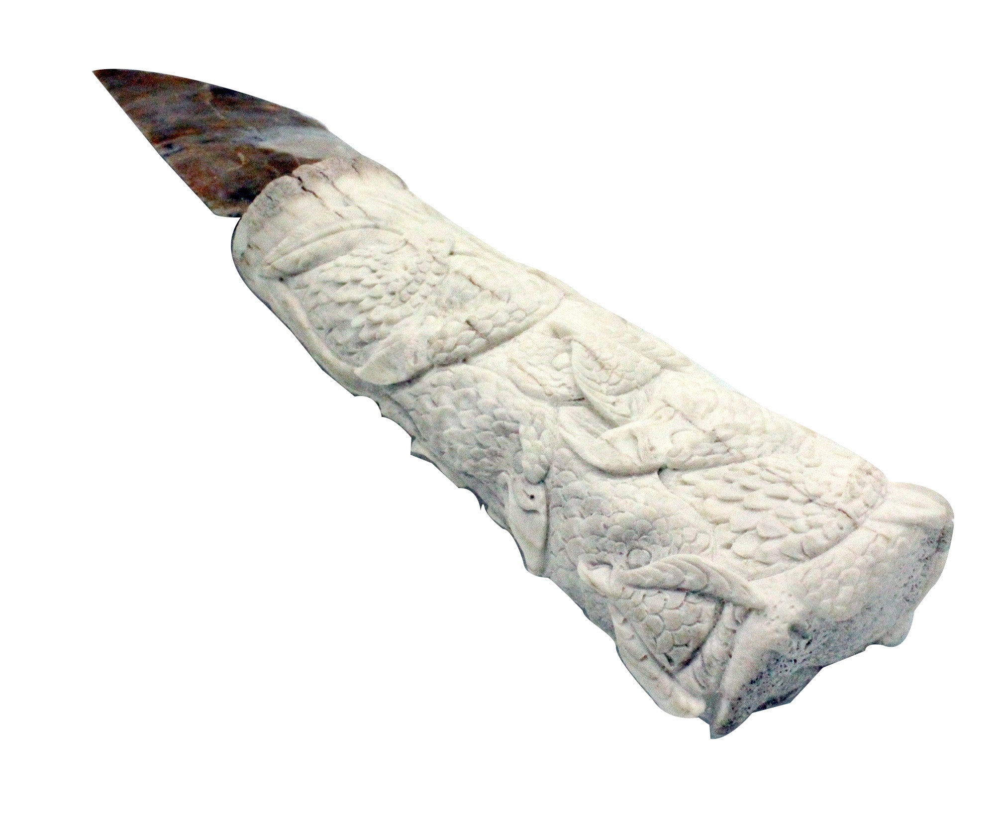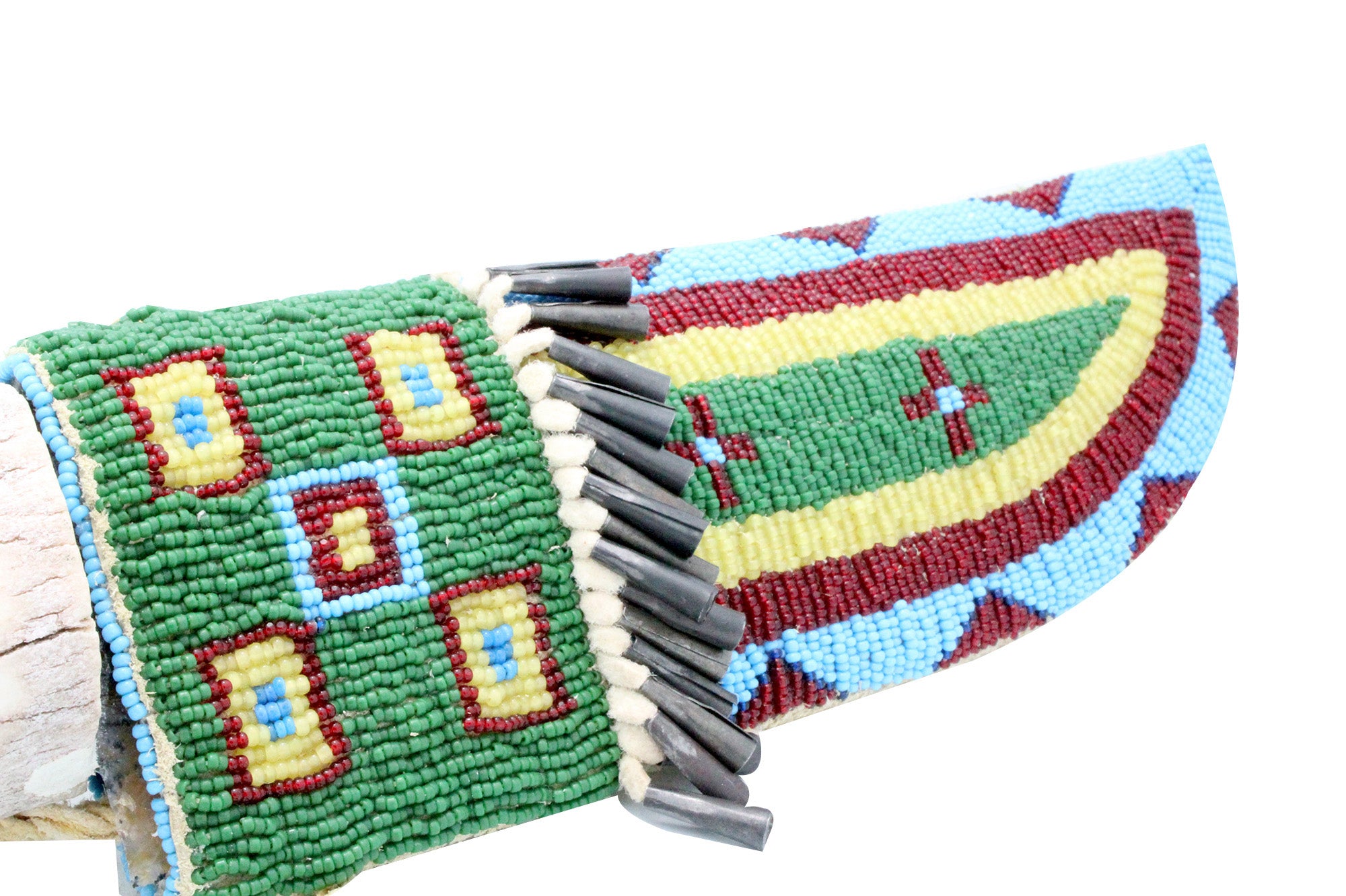 Davin Singer, Handmade Knife, Carved Antler Handle, Beaded Sheath?