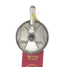 Every time Navajo silversmith Darryl Dean Begay begins making something new you have the chance of something great happening. That is exactly what happened when he made this amazing tobacco flask. It is the first we have ever seen from this award-winning artist. This flask is carved different on each side. You will find an eagle on one and a corn stalk on the other. He used some incredible pieces of turquoise to decorate it. The piece has Apache Blue, Royston, and Cloud Mountain Turquoise that shows off beautifully against the finish. Every collection should have those rare pieces.