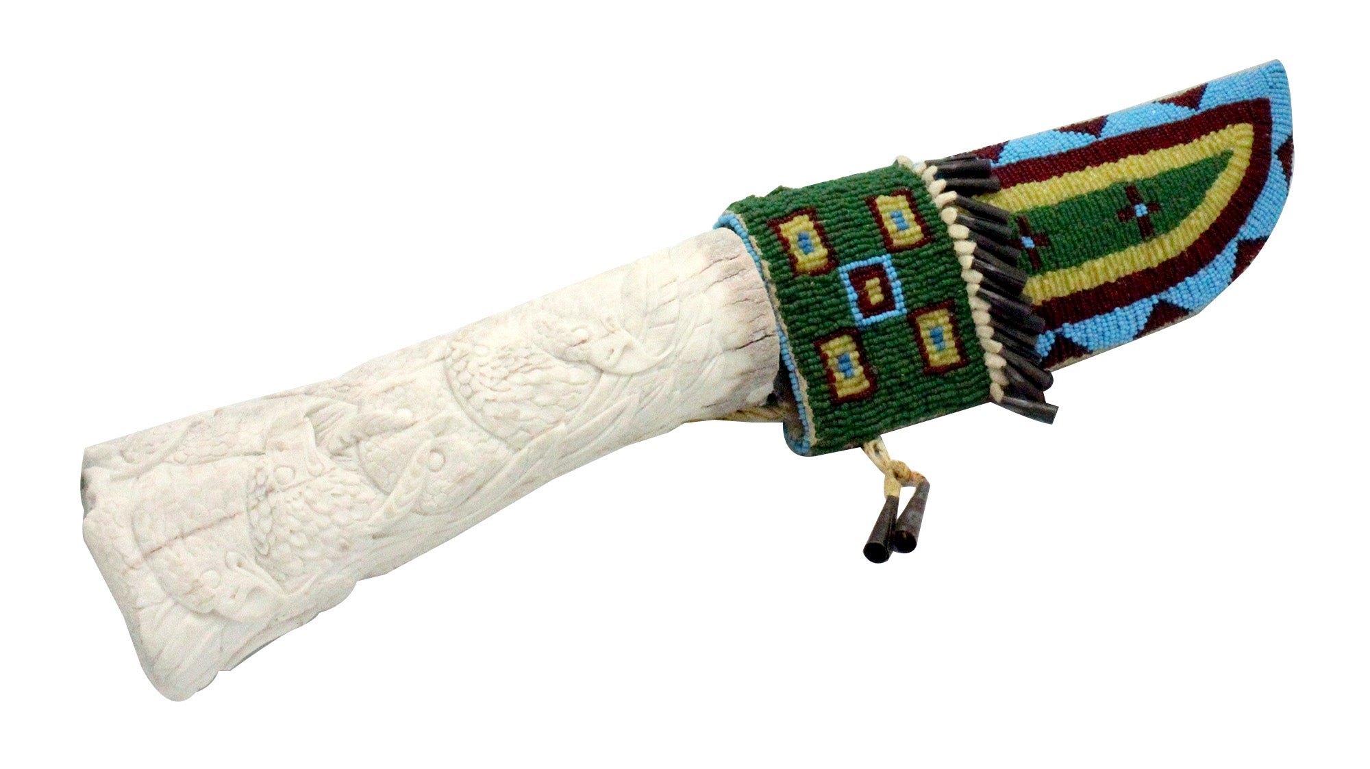 Davin Singer, Handmade Knife, Carved Antler Handle, Beaded Sheath?