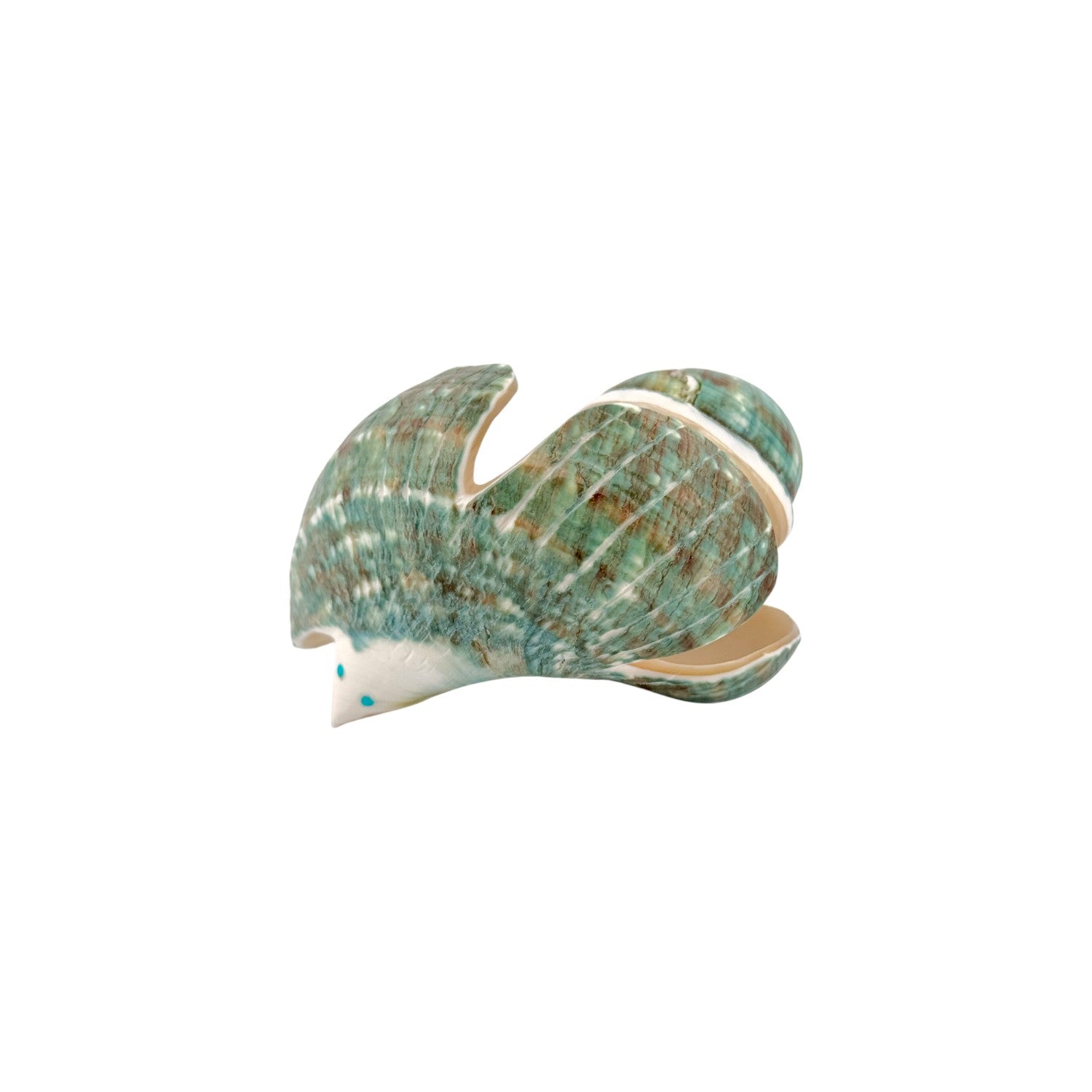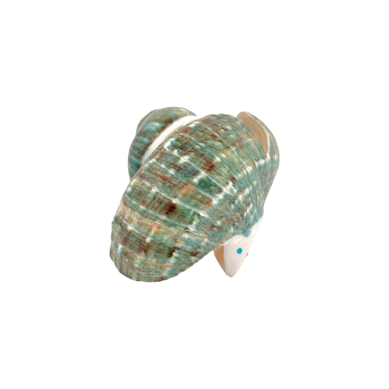 This stunning eagle fetish by Zuni artist Delvin Leekya is expertly hand-carved from a natural shell, showcasing soft green and cream hues with intricate natural patterns. The eagle, a sacred symbol of strength, freedom, and spiritual connection, is beautifully formed with outstretched wings that capture a sense of graceful motion. Delvin’s skillful craftsmanship highlights the shell’s natural sheen, giving the carving a lifelike presence. The eagle’s turquoise inlay eyes add a touch of vivid color and spiritual energy, bringing warmth and vitality to the piece. This elegant fetish reflects both Zuni tradition and Delvin Leekya’s signature artistry, making it a meaningful addition to any Native art collection.