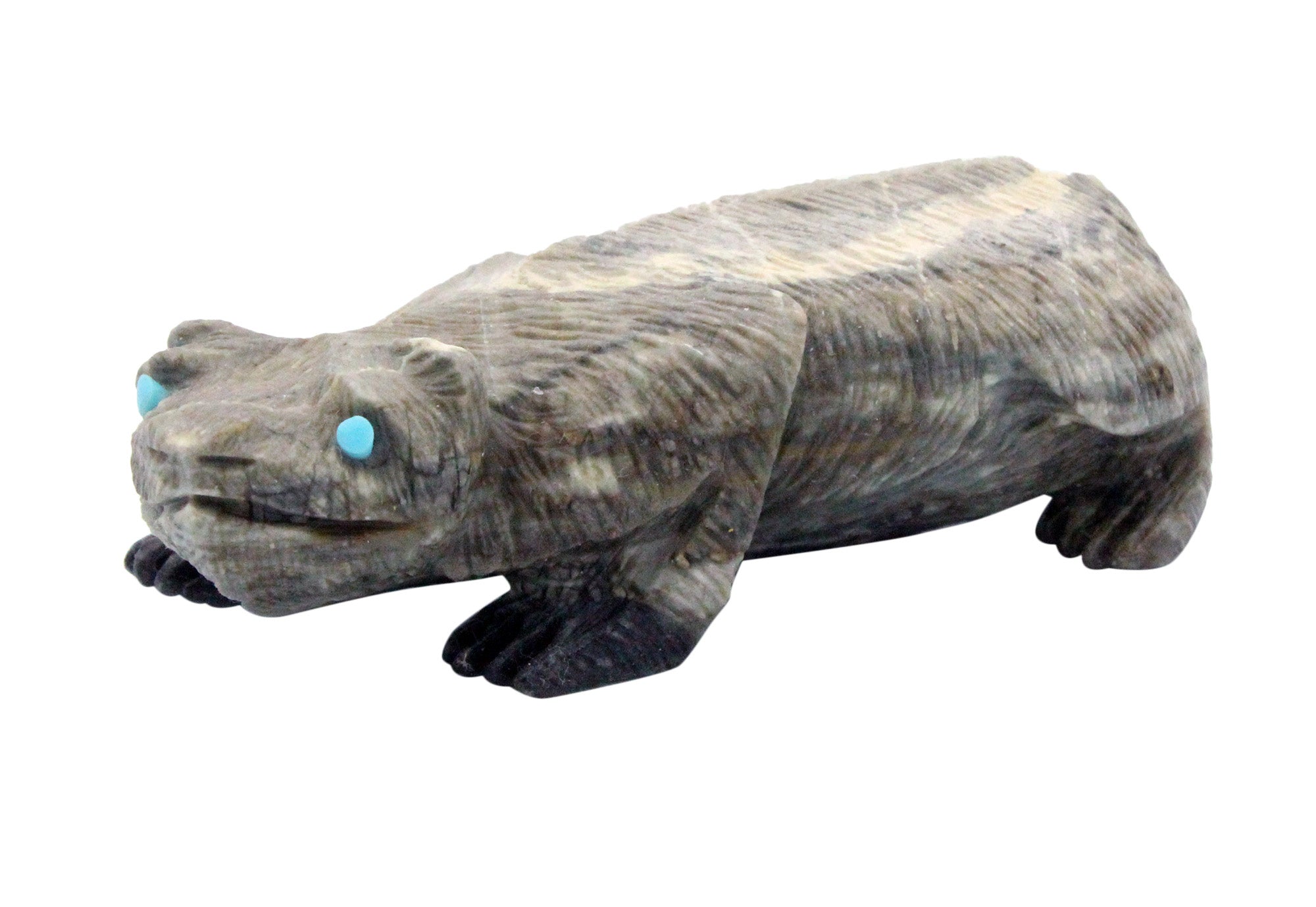 Ben Kaamasee, Badger Fetish, Picasso Marble, Turquoise, 1.5"