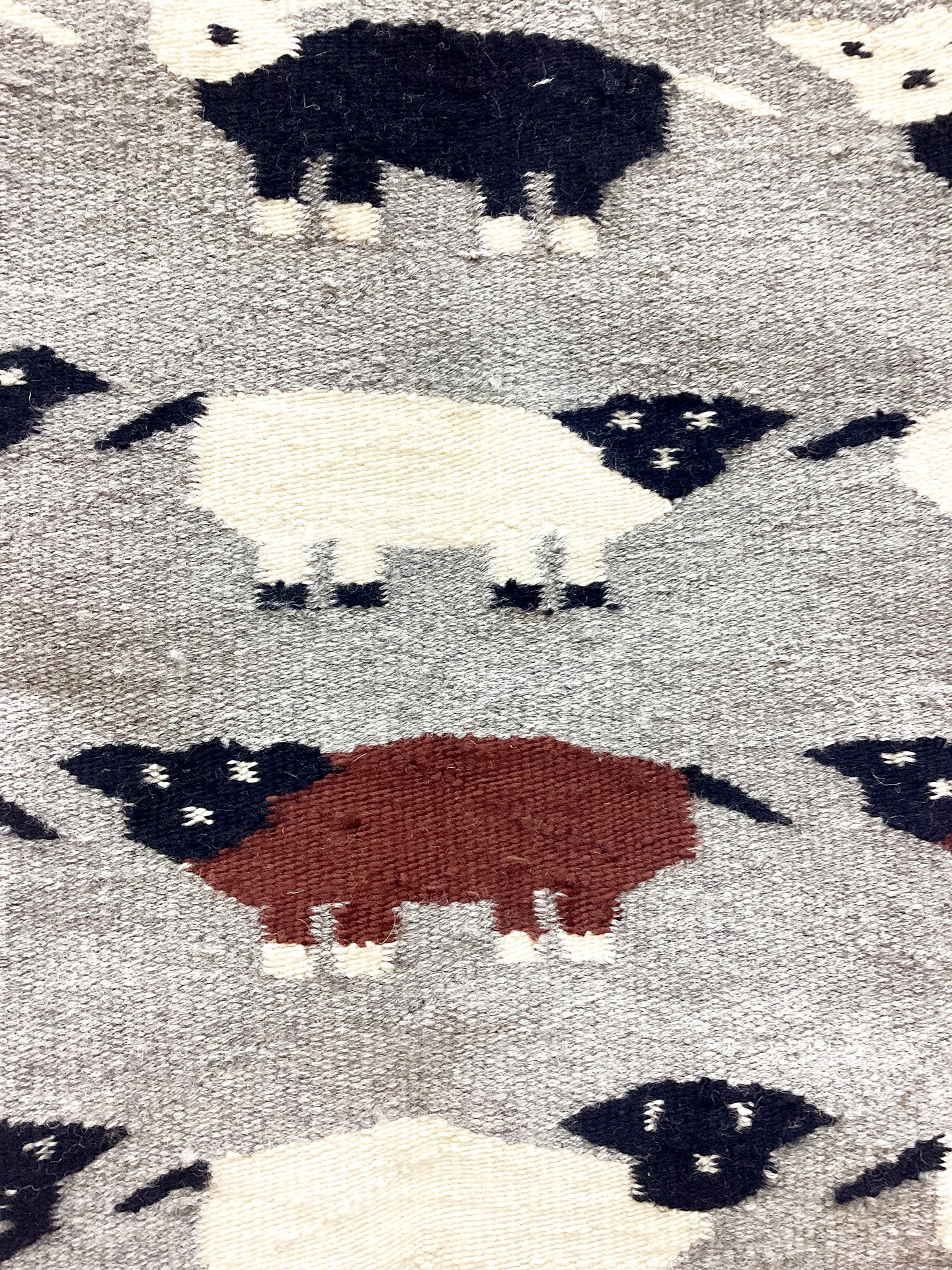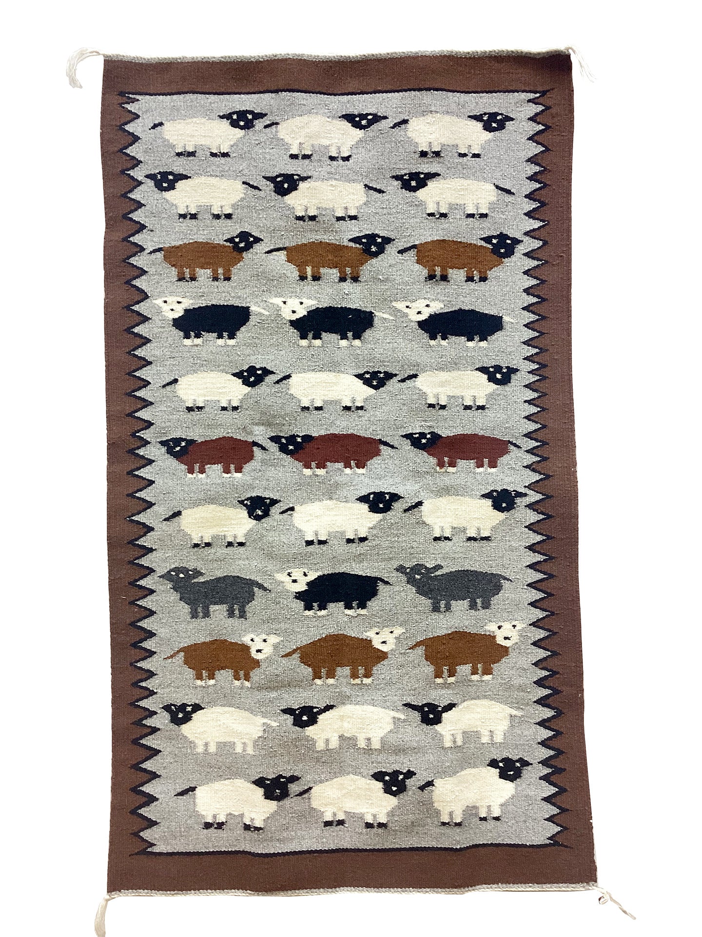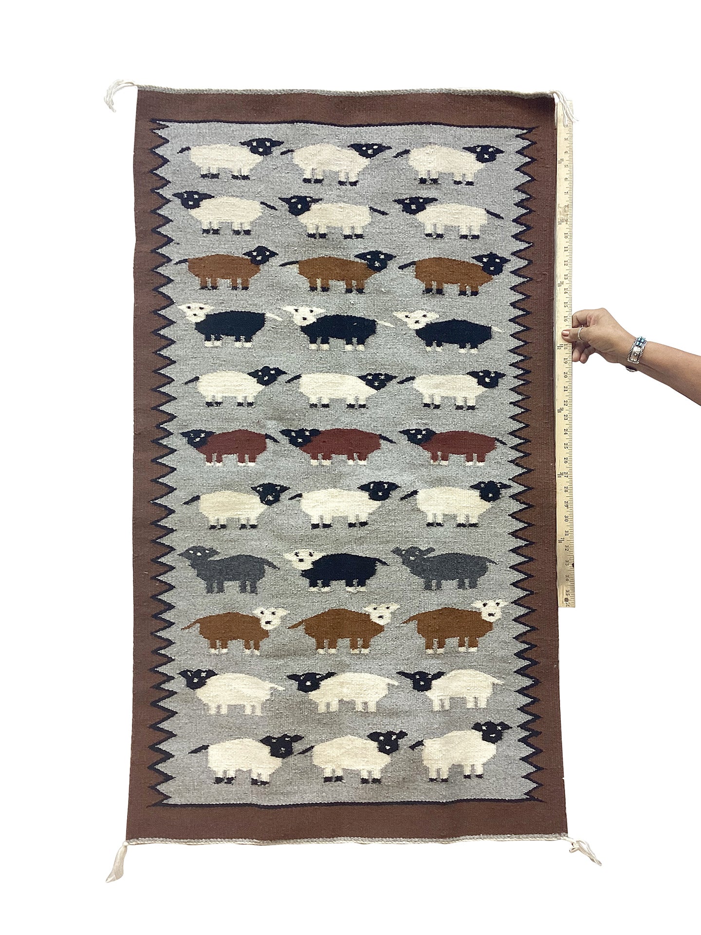 Nora Bitah, Flock of Sheep, Pictorial, Navajo Handwoven Rug, 52” x 30