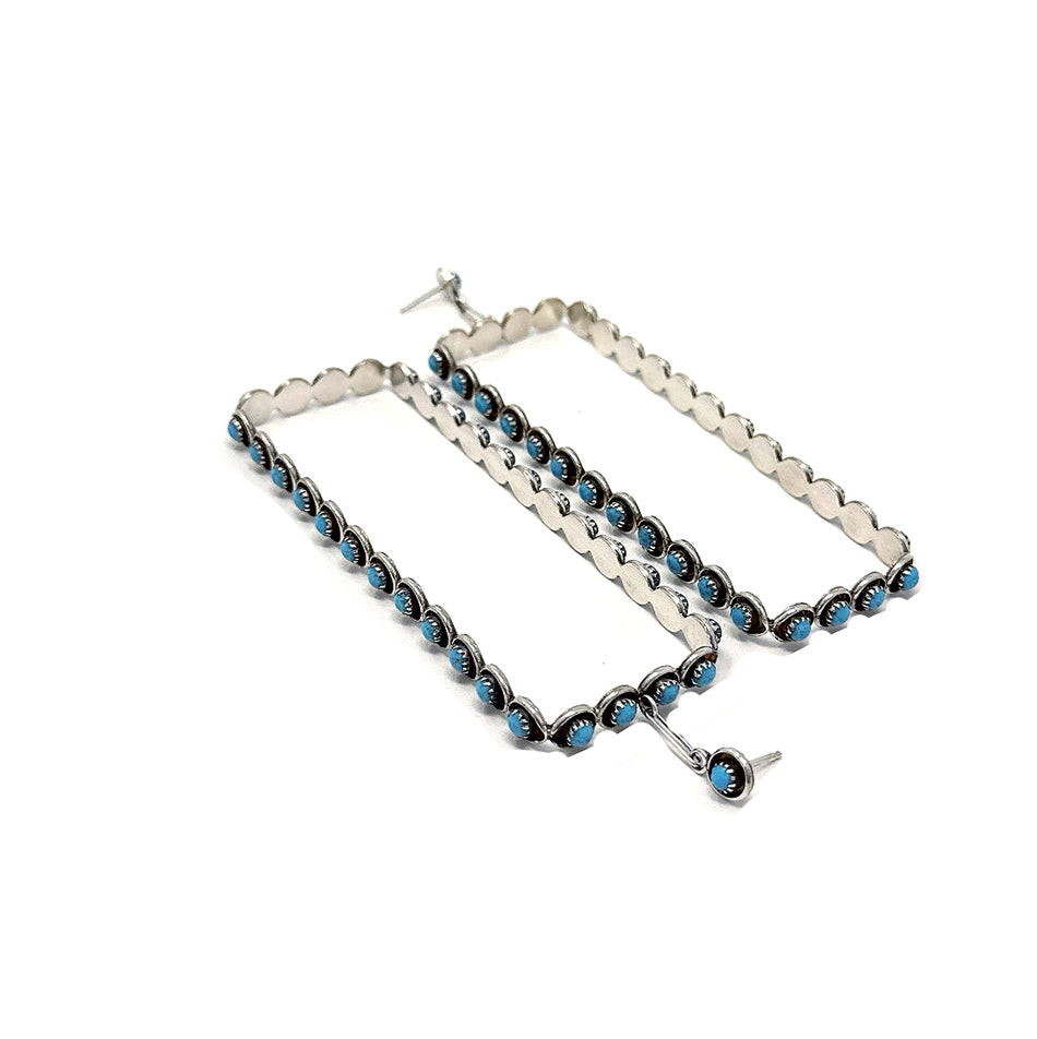 Iva Booqua, Earring, Kingman Turquoise, Sterling Silver, Zuni, 4"