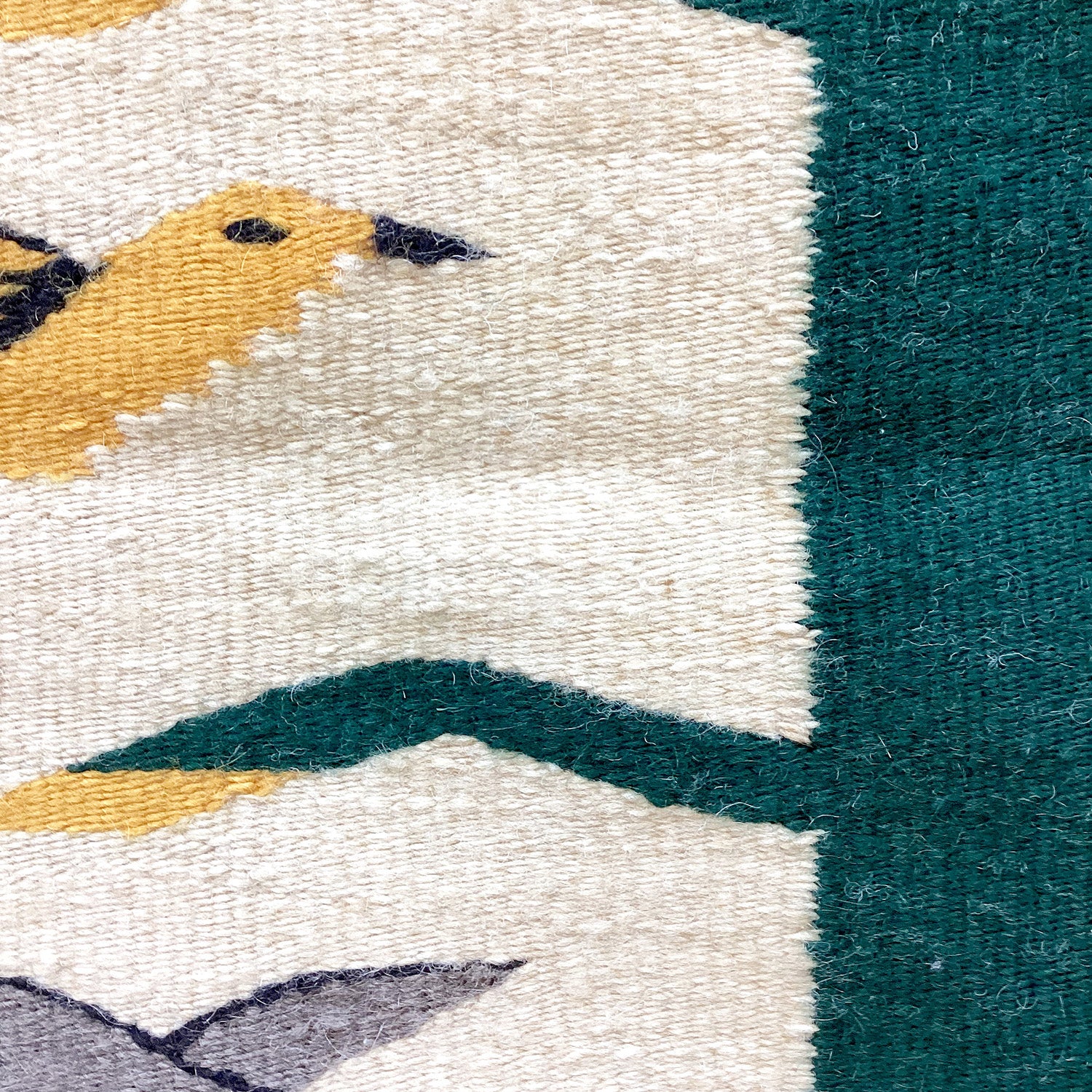 Traders like JB Moore would be the first to introduce the art of the Navajo to collectors back east, but it was rugs (not silver) that first captured the imaginations collectors and decorators. Following Moore's suit, other traders would begin to market Navajo weaving, even influencing many of the well-known styles. Today styles are not defined by regions, but perfected by dedicated weavers from all parts of the Navajo Nations. We have put together a large collection of rugs on our online Trading Post and hope you take time to look through them all. Hopefully, you will find the perfect rug. You will find the colorful birds perched on the corn stalk in this Tree of Life weaving. The symbol of life rises out of a ceremonial basket that has eagle feathers placed at the base. Navajo weaver Nora Bitah surrounds the Tree of Life with a black border that brings your attention to the fascinating center design. This is a very nice weave and the size will allow you to place this handmade weaving in many different settings.